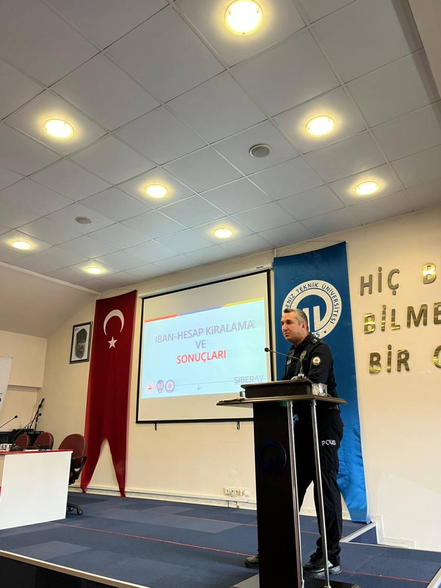 Günümüzde dijitalleşmenin hızla artmasıyla birlikte IBAN dolandırıcılığı, oltalama (phishing) yöntemleri ve sosyal mühendislik faaliyetleri bireylerin maddi ve manevi güvenliğini ciddi şekilde tehdit etmektedir. Bu doğrultuda, Meslek Yüksekokulumuz bünyesinde görev yapan akademik ve idari personel ile öğrencilerimizin dijital mecraları daha güvenli kullanmalarını sağlamak, güncel dolandırıcılık yöntemlerine karşı bilinç düzeylerini artırmak ve olası mağduriyetlerin önüne geçmek amacıyla “IBAN ve Dijital Dolandırıcılık Farkındalık Eğitimi” düzenlendi.