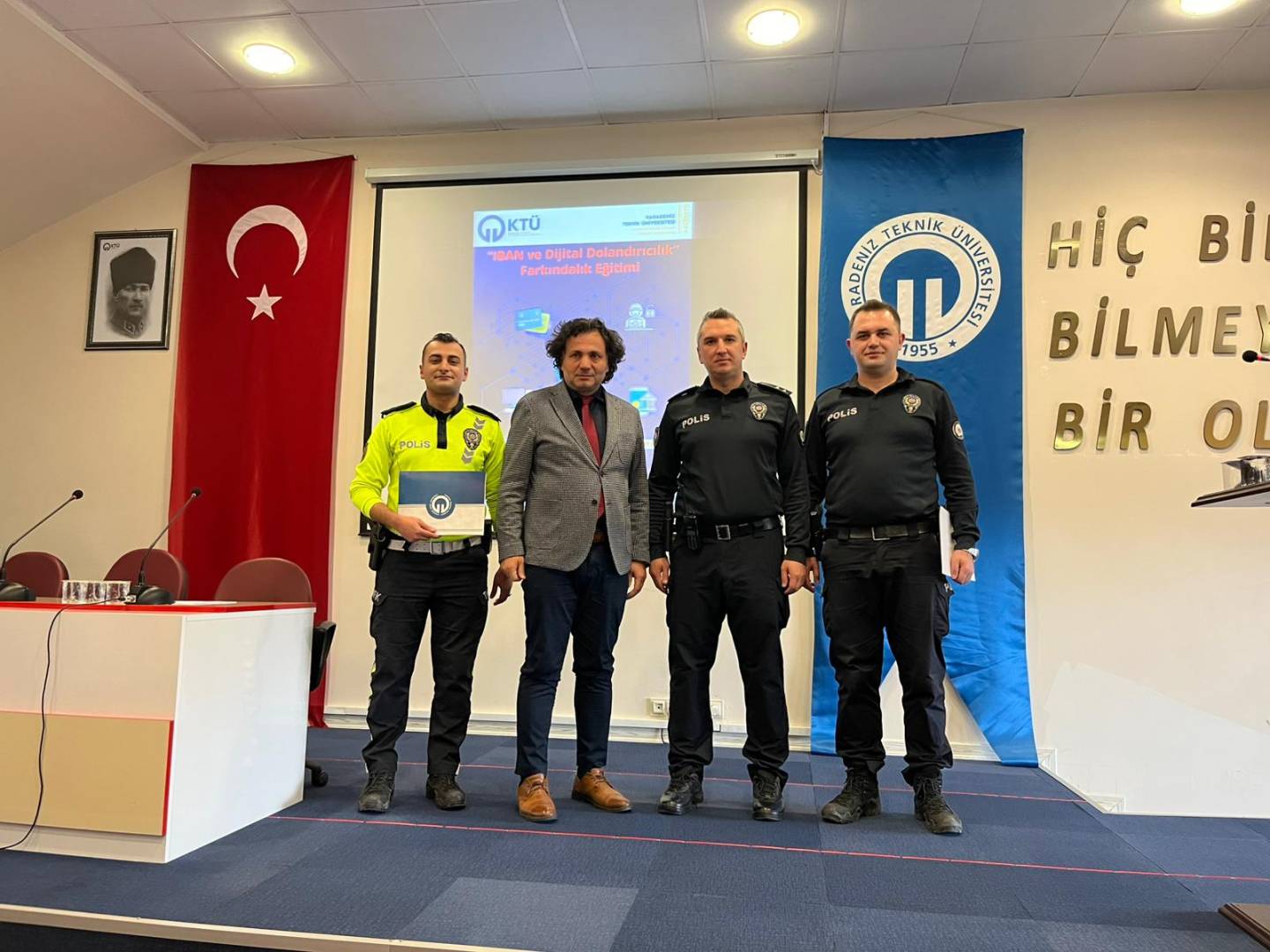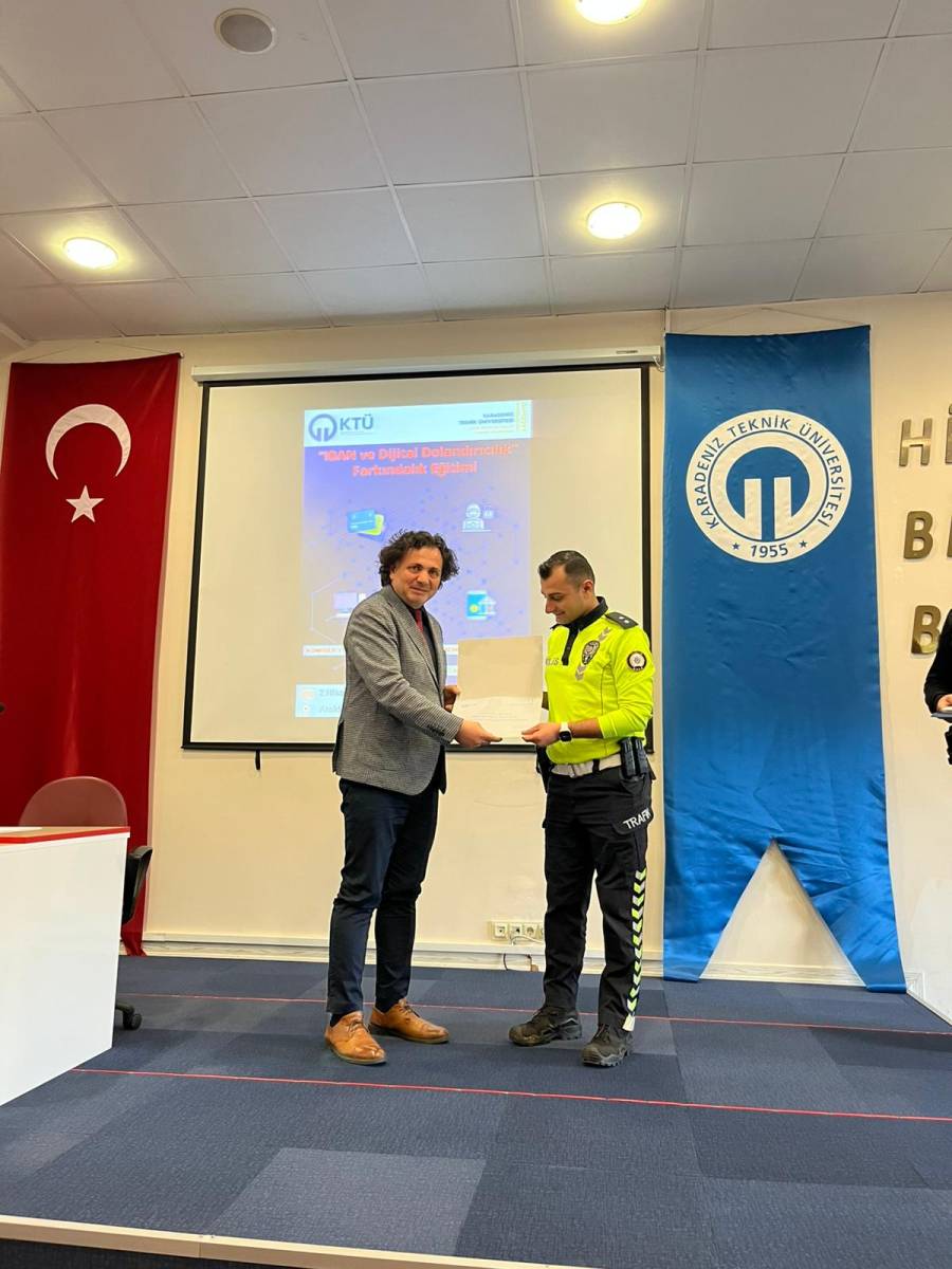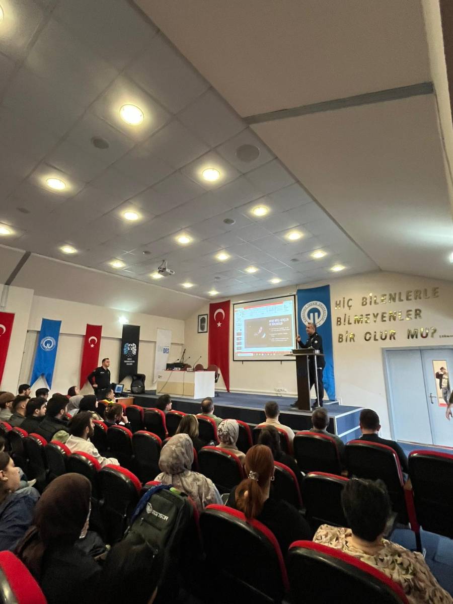 Eğitim, İlçe Emniyet Teşkilatı personelleri Polis Memuru Ozan URALLAR, Komiser Yücel İSLAMOĞLU ve Komiser Muhammet Ülkü OKUTUR tarafından verildi. Program kapsamında; IBAN dolandırıcılığı, oltalama (phishing) saldırıları ve sosyal mühendislik yöntemleri detaylı şekilde ele alınarak, katılımcılara bu tür tehditlere karşı alınabilecek önlemler hakkında kapsamlı bilgiler aktarıldı.