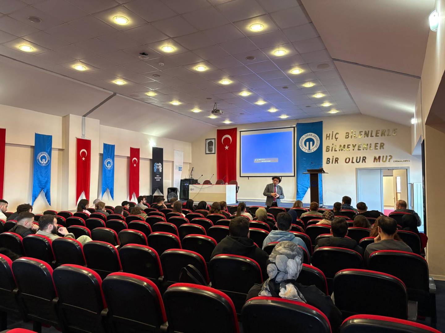 Elektronik ve Otomasyon Bölümü öğrencileri için Konferans Salonunda düzenlenen programa bölüm başkanımız, akademik personelimiz ve öğrencilerimiz katıldı. Öğrencilerin yoğun ilgi