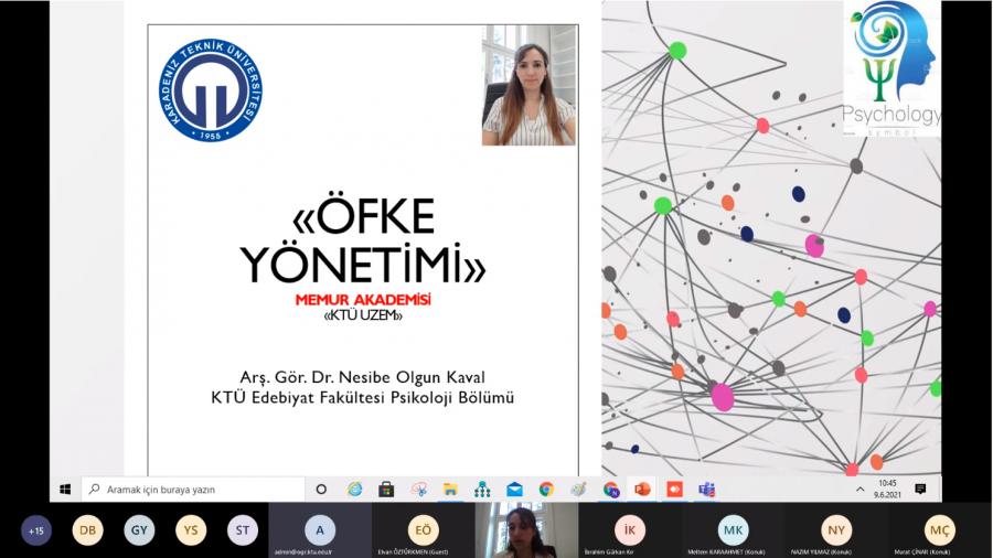Memur Akademisi'nde bu hafta, "Öfke Yönetimi" konusu 09 Haziran 2021 Çarşamba günü 13.30-15.00 saatleri arasında, Arş. Gör. Nesibe OLGUN KAVAL tarafından online olarak işlendi ve sorular cevaplandırıldı.