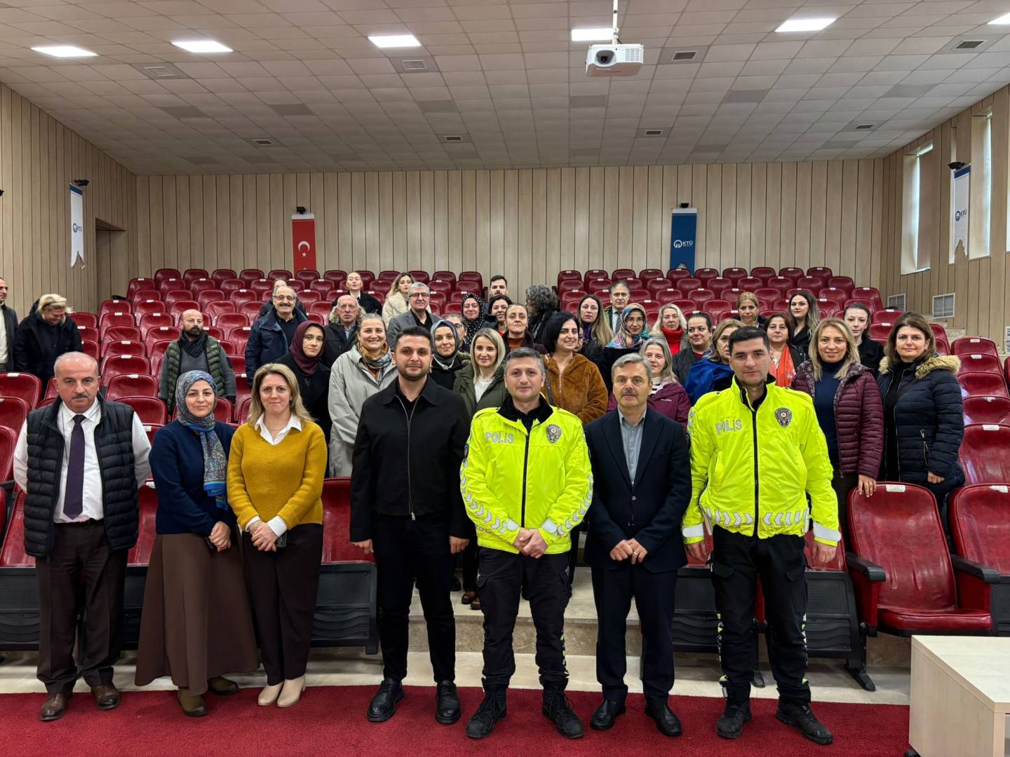 Üniversitemiz bünyesinde görev yapan idari personelin yoğun katılım gösterdiği eğitim programı, katılımcılar tarafından ilgiyle takip edildi. Trafik güvenliğinin hem bireysel hem de toplumsal boyutlarının ele alındığı eğitimde, personelin günlük yaşamda karşılaştığı trafik risklerine yönelik farkındalığın artırılması amaçlandı.
