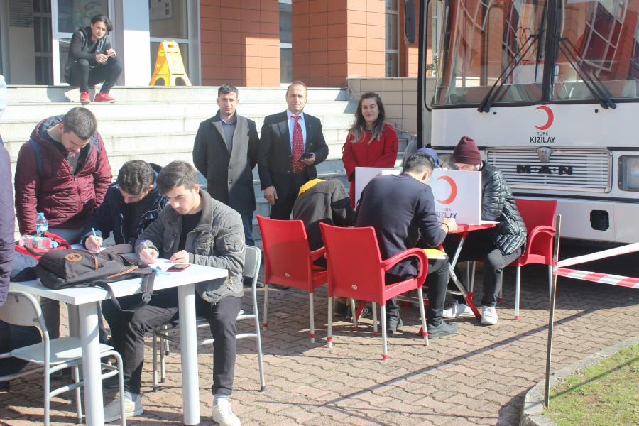 Türk Kızılayı Trabzon Şubesi Kan Bağış Merkezi tarafından Meslek Yüksekokulumuzda kan bağışı kampanyası düzenlendi. Kampanya öncesinde, Kan Bağışçısı Kazanım Uzmanı Dilek Karaağaçlı tarafından, öğrencilerimize ve personelimize bilgilendirme yapıldı.Kanın sürekli bir ihtiyaç olduğunu ifade eden Karaağaçlı, "kanın tek kaynağının insan olduğunu, verilecek bir ünite kan ile 3 (üç) insanın hayatının kurtulabileceğini söyleyerek," kan bağış kampanyasına gösterdikleri ilgi dolayısı ile MYO öğrencilerimize ve personelimize teşekkür etti.