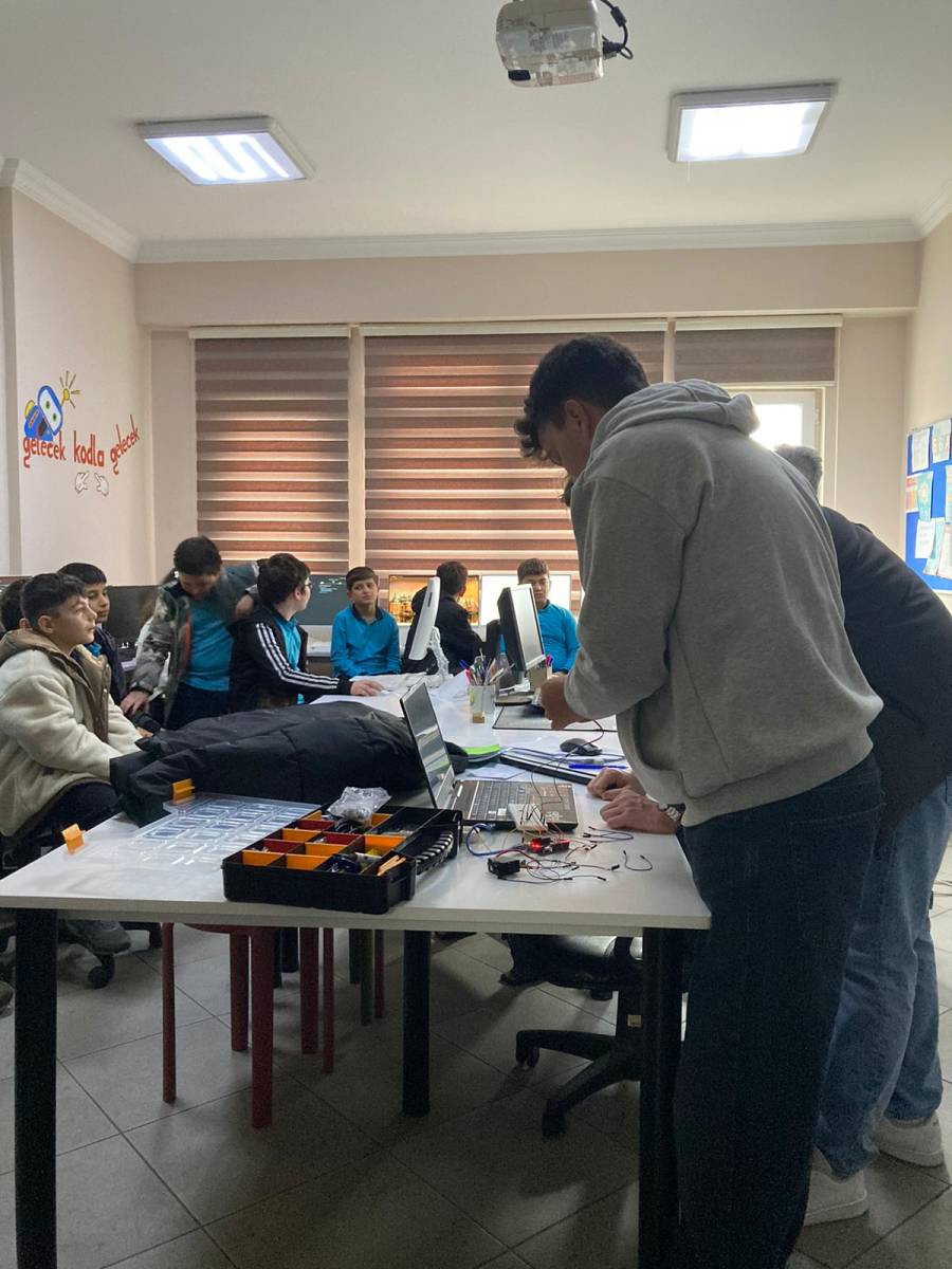 Meslek Yüksekokulumuz Elektrik ve Enerji Bölümü Öğretim Elemanlarımızdan, Öğr. Gör. Ahmet AKTOĞAN danışmalığında Elektronik Teknolojisi Programı öğrencilerinden Mehmet DEMİR ve Samet ARSLAN tarafından Geleceğin Mühendisleri-Uygulamalı Robot Geliştirme Eğitiminin Çevre Ortaokullarda Gerçekleştirilmesi” “Birimler veya Öğrenciler Tarafından Yürütülen Sosyal Sorumluluk Projeleri” kapsamında Çamburnu Fazıloğlu Mahmut Bıçakçı Ortaokulu’nda öğrenciler ile bir araya gelerek ilgili eğitim başarıyla gerçekleştirilmiştir.