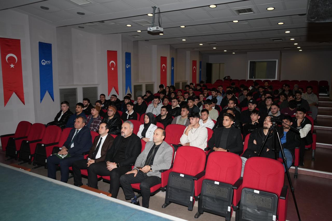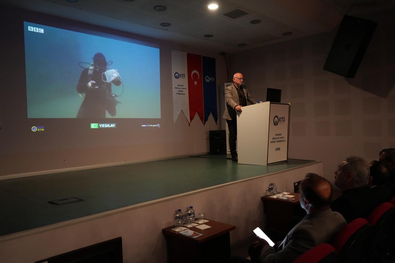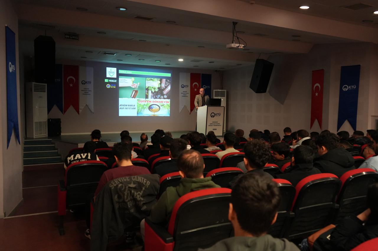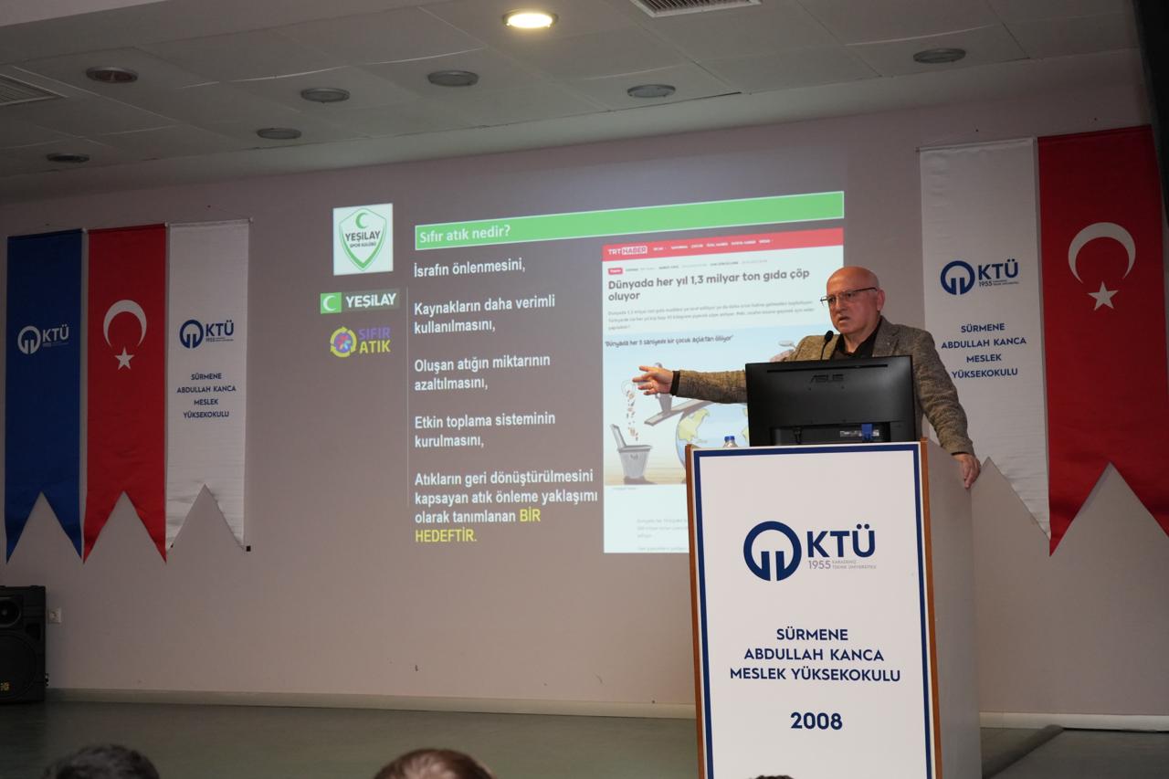 19.11.2025 tarihli ve 05 sayılı Birim Danışma Kurulu Dış paydaş toplantısında alınan karar gereğince, Sürmene Belediye Başkanlığı ile yapılan görüşme ile; KTÜ geneline çevre bilinci ve sürdürülebilirlik kapsamında, sıfır atık konusunda bilgilendirme amacıyla; Sürmene Belediye Başkan Yardımcısı Sayın: Zeki EFENDİOĞLU tarafından, Meslek Yüksekokulumuzda “Sıfır Atık” konusunda bilgilendirme konferansı düzenlendi.