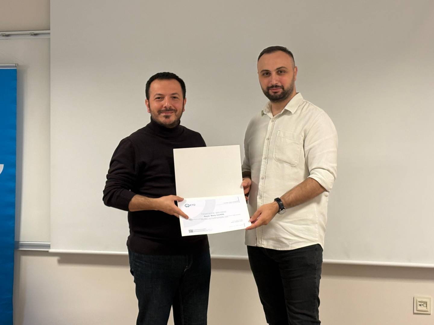 Etkinlik sonunda eğitimi veren hocalara teşekkür belgesi takdim edildi. Araklı Ali Cevat Özyurt Meslek Yüksekokulu olarak katkı sağlayan tüm katılımcılara ve eğitmenlere teşekkür ederiz.