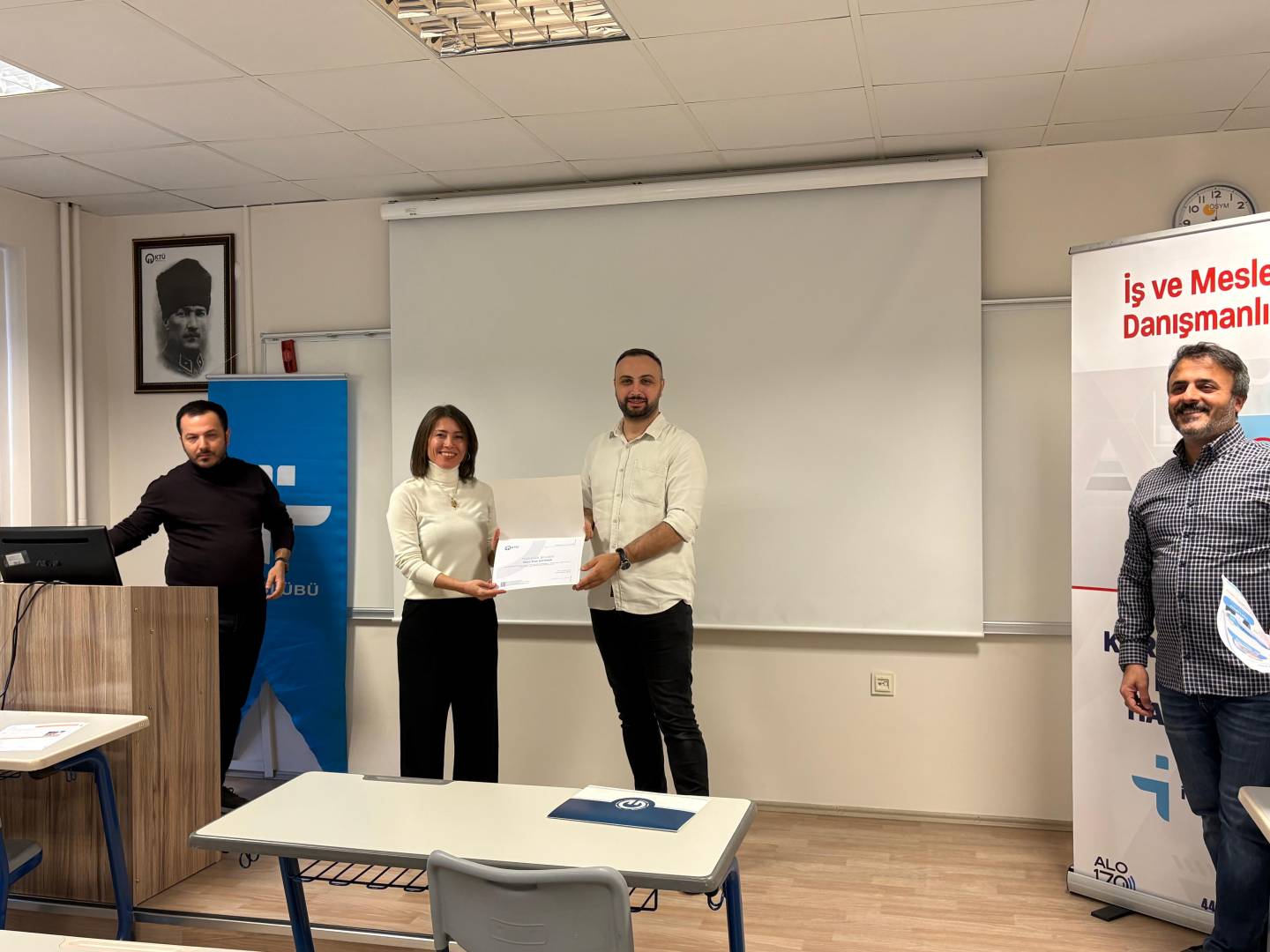 Atölyede stratejik kariyer hedefi tasarımı, özgeçmiş hazırlama, mülakatlarda başarı stratejileri, yetkinlik ve SWOT analizi, İŞKUR istihdam destekleri ve LinkedIn’de dijital kariyer yönetimi gibi konular ele alındı. Eğitim, İş ve Meslek Danışmanları Emel Şahinler ve Barış Kandil tarafından verildi.