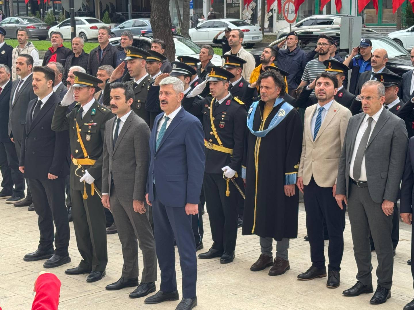 29 Ekim Cumhuriyet Bayramı münasebetiyle Meslek Yüksekokul Müdürümüz Prof. Dr. Özcan ÖZYURT, Araklı kaymakamlığınca düzenlenen Cumhuriyet Bayramı çelenk sunma törenine katıldı. Araklı kaymakamı Sayın Mehmet Ali UZUN'un önderliğinde ve ilçe protokol üyelerinin katılımı ile düzenlenen tören saygı duruşu ve istiklal marşının okunmasıyla başlanıp çelenk sunumu ile tamamlandı.