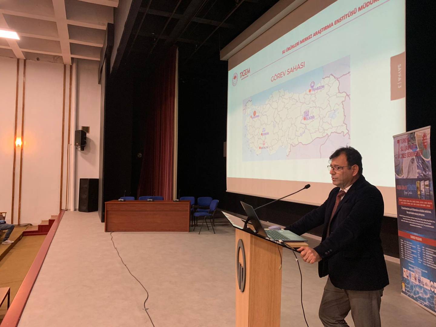 Açılış konuşmasını Aqua Life of Türkiye’den Kemal Cem Pülten yaptı. Ardından KTÜ Sürmene Deniz Bilimleri Fakültesi Dekanı Prof. Dr. Ali Muzaffer Feyzioğlu konuşma yaptı. Etkinlikte Trabzon Tarım ve Orman İl Müdürü İsa Kaplan, su verimliliği üzerine bilgiler paylaştı ve öğrencilerin sorularına büyük bir içtenlikle cevaplar verdi. Trabzon Su Ürünleri Araştırma Enstitüsü Teknik Koordinatörü Sebahattin Kutlu, enstitüyü tanıtarak yürüttükleri projelerden ve araştırmalardan bahsetti. Balıkçılık Teknolojisi Mühendisliği Bölümü Öğretim Üyesi Prof. Dr. İlhan Altınok, balıklarda kullanılan aşı çalışmaları hakkında sunum yaptı. Trabzon SUR-KOOP’tan Ahmet Mutlu ise kooperatifin faaliyetlerininden bahsetti. DOKA Kalkınma Ajansından Salih Şahin başvuru yapılabilecek projelerden ve yapılması planlanan çalışmalardan bahsetti. Programın son konuşmasını PCS Elektronik’ten Mehmet Efe yaptı. Ürettikleri ürünlerden bahsederek, su ürünleri sektöründe teknolojik gelişmelerin ve dijitalleşmenin önemini vurguladı.