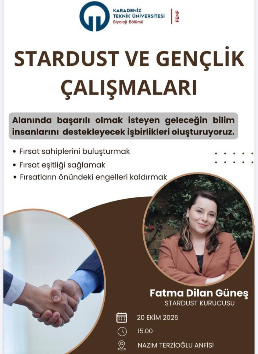Stardust Ve Gençlik Çalışmaları konulu etkinlik en Fakültesi, Nazım Terzioğlu Amfisinde 20.10.2025 tarihinde saat 15.00'te gerçekleştirilecektir.