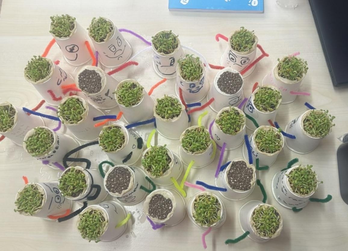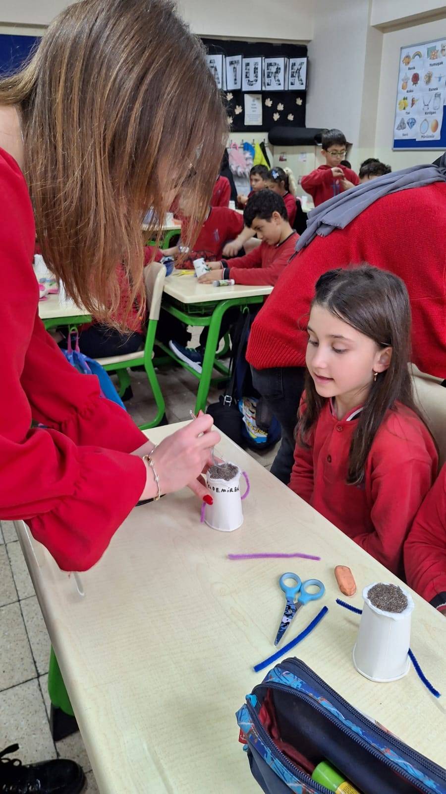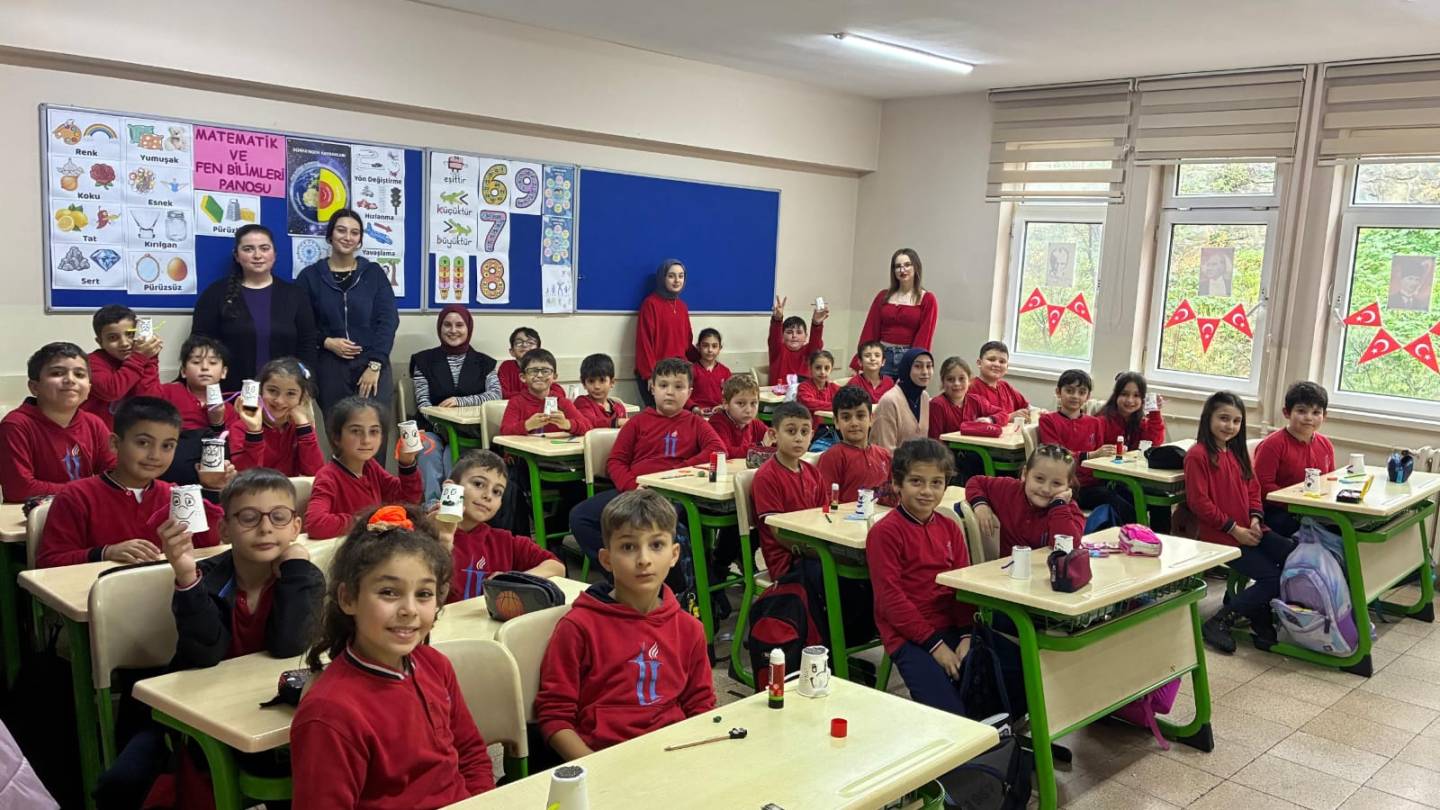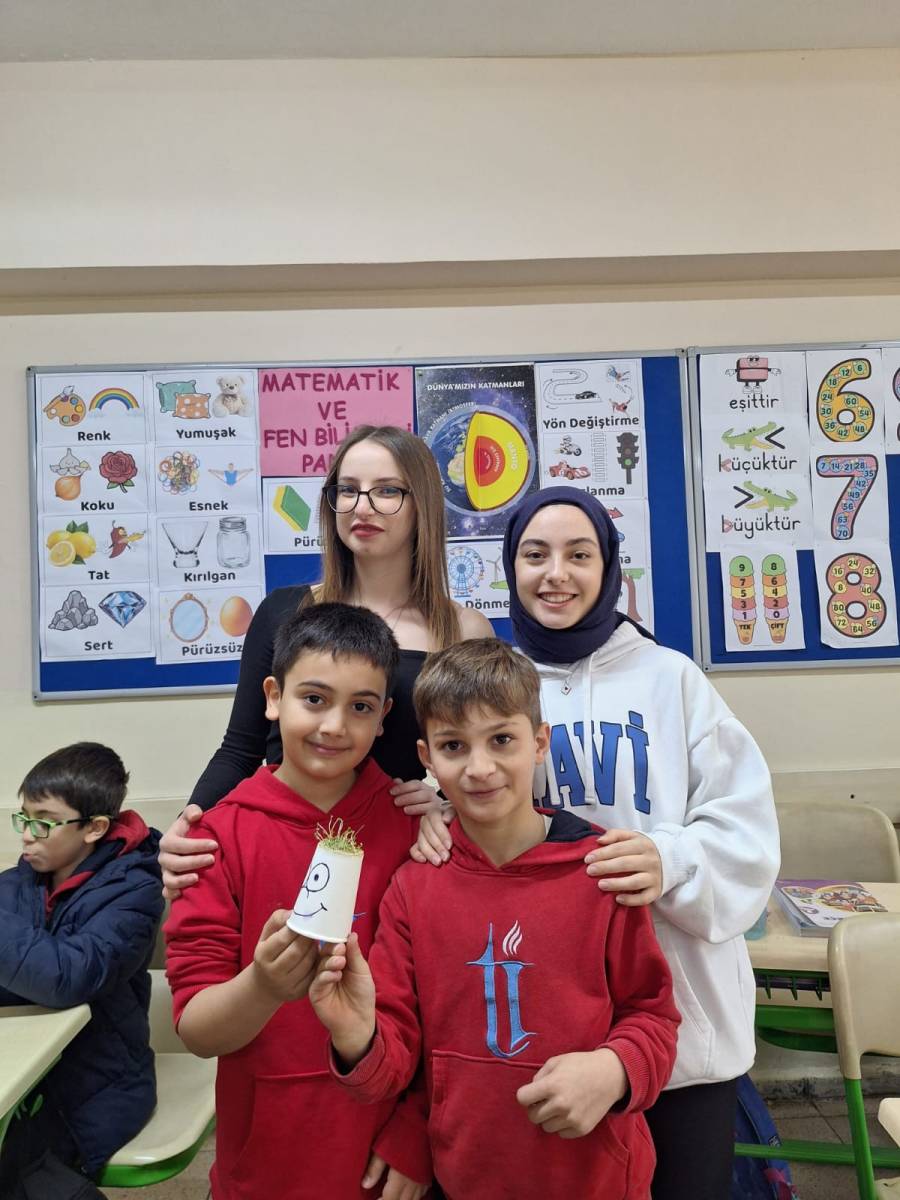 Ticaret İlkokulu öğrencileri ile bir araya gelinen etkinlikte, çocuklara doğa sevgisini aşılamak ve sorumluluk bilincini geliştirmek amacıyla chia tohumu ile "Çim Adam" yapımı gerçekleştirilmiştir. Minik öğrencilerin büyük bir heyecanla katıldığı bu atölye çalışmasında, bitkilerin büyüme süreci uygulamalı olarak anlatılmıştır.
