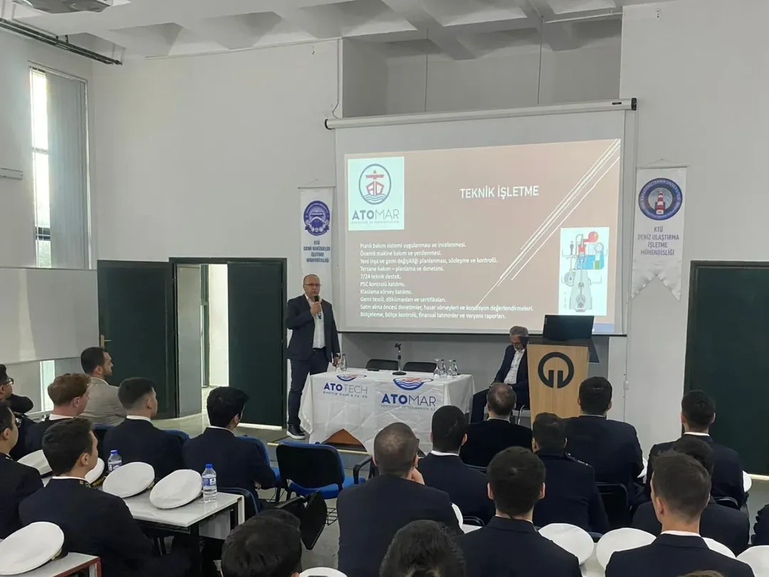 Etkinliğe, Atomar & Atotech Personel Müdürü Fatih Ağman ve İşletme Müdürü Osman Menteşe katılım sağladı. Gerçekleştirilen sunumlarda firmaların güncel filoları, operasyonel süreçleri ve istihdam politikaları hakkında detaylı bilgilendirme yapıldı. Sunumların ardından öğrencilerimizin soruları yanıtlandı ve program, konuşmacılara plaket takdim edilmesiyle sona erdi.
