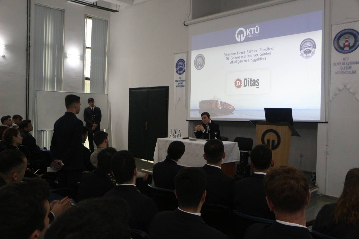 Etkinliğe, Ditaş Denizcilik Personel Enspektörü Serkan Mimir katılım sağladı. Gerçekleştirilen sunumda, firmanın filosu tanıtılarak işe alım süreçlerinde aranan kriterler hakkında öğrencilerimize bilgi verildi.
