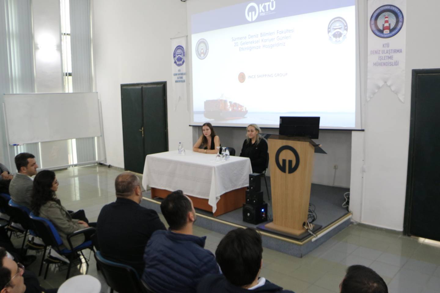 Kariyer Günlerimizin bu oturumunda, İnce Denizcilik İnsan Kaynakları Danışmanı Candan Arslan ile Asfalindo Surya Pratama firmasını temsilen Şeyma Ayaz öğrencilerimizle bir araya geldi. Gerçekleştirilen sunumlarda, denizcilik sektöründe insan kaynakları yönetimi, uluslararası çalışma ortamları ve kariyer planlamasına ilişkin önemli paylaşımlarda bulunuldu.