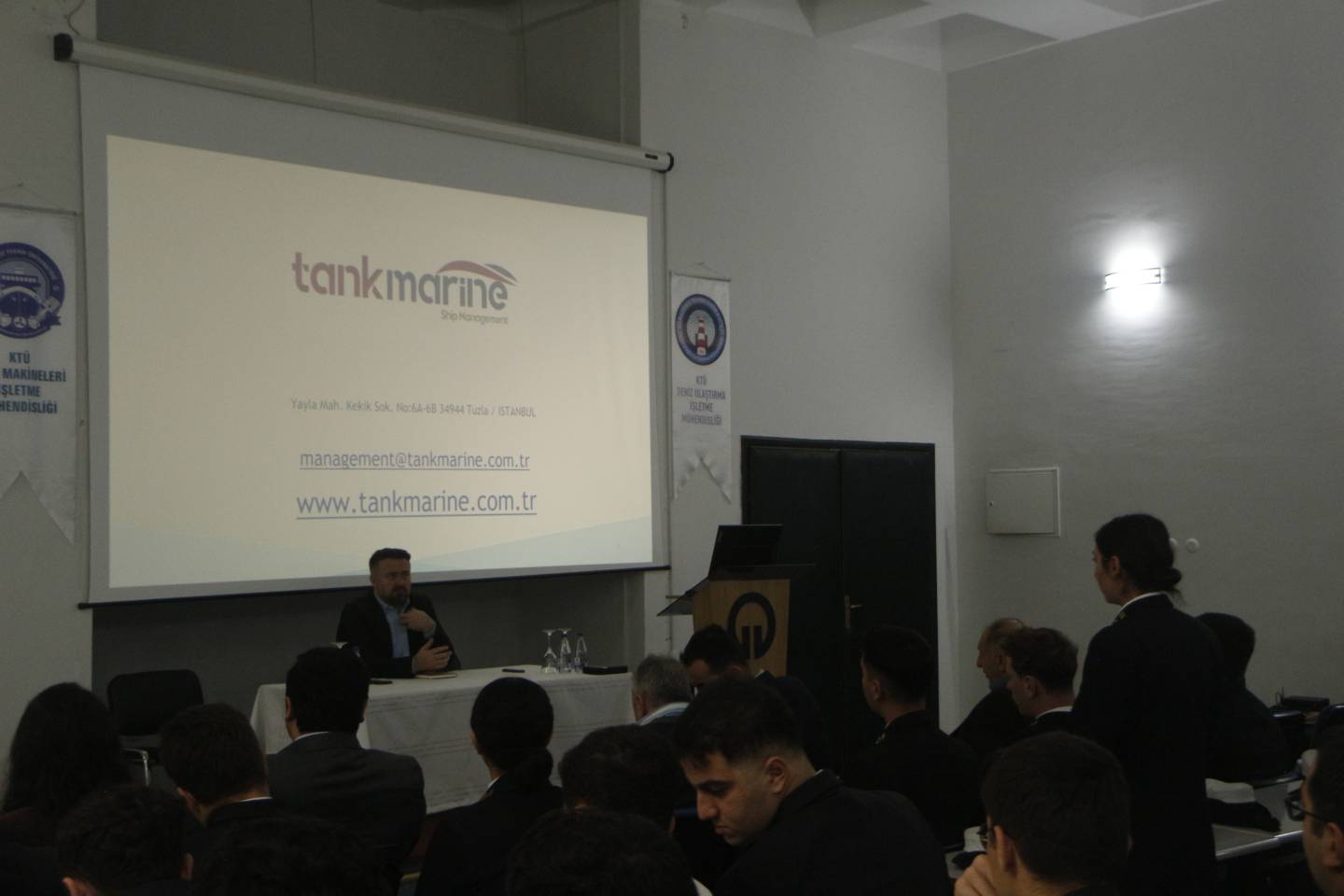 Ditaş Denizcilik Personel Enspektörü Serkan Mimir katılım sağladı. Gerçekleştirilen sunumda, firmanın filosu tanıtılarak işe alım süreçlerinde aranan kriterler aktarıldı
