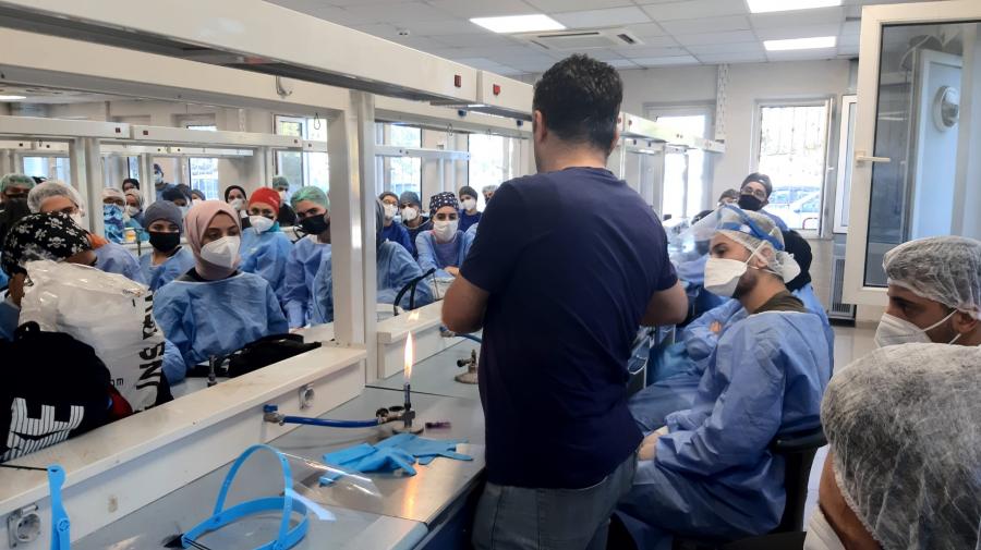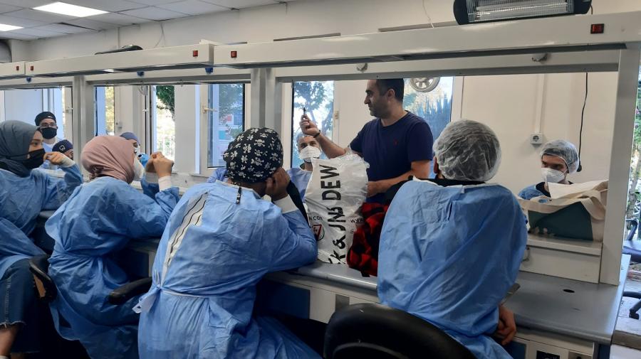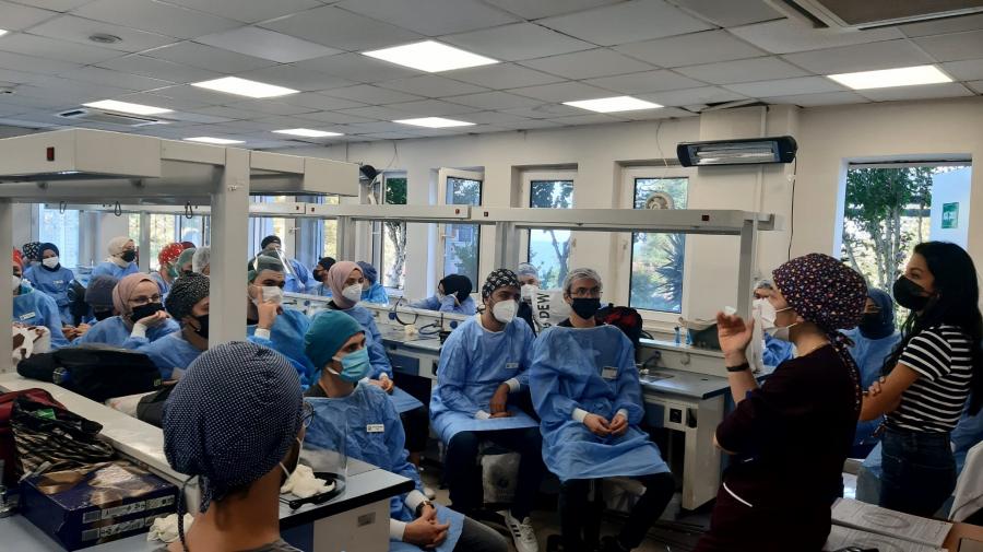 2022-2023 Eğitim-Öğretim Yılı'nda Fakültemiz laboratuvarlarında uygulamalı eğitim görecek olan Dönem I, II ve III. sınıf öğrencilerimize yönelik “Laboratuvar Ortamında İş Güvenliği” başlığı altında laboratuvar güvenlik önlemleri, kişisel koruyucu ekipman kullanımı, yangın tüpü kullanımı ve atık yönetimi konularında bilgilendirme eğitim düzenlenmiştir.