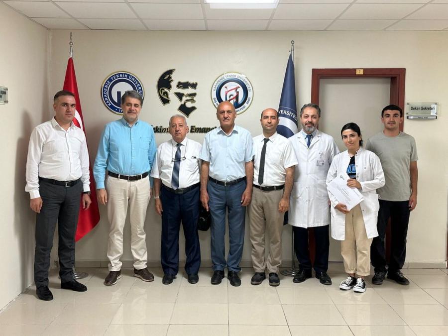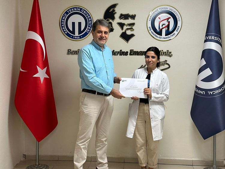 Nahçıvan Devlet Üniversitesi akademik personelinden oluşan bir heyet Fakültemize ziyaret gerçekleştirilmiş olup ayrıca 10-21 Temmuz 2023 tarihleri arasında Fakültemiz kliniklerinde gözlem ve incelemelerde bulunmak üzere gelen Nahçıvan Devlet Üniversitesi Diş Hekimliği Fakültesi öğrencilerinden Fatime İBRAHİM QIZI'ya sertifikası takdim edilmiştir.