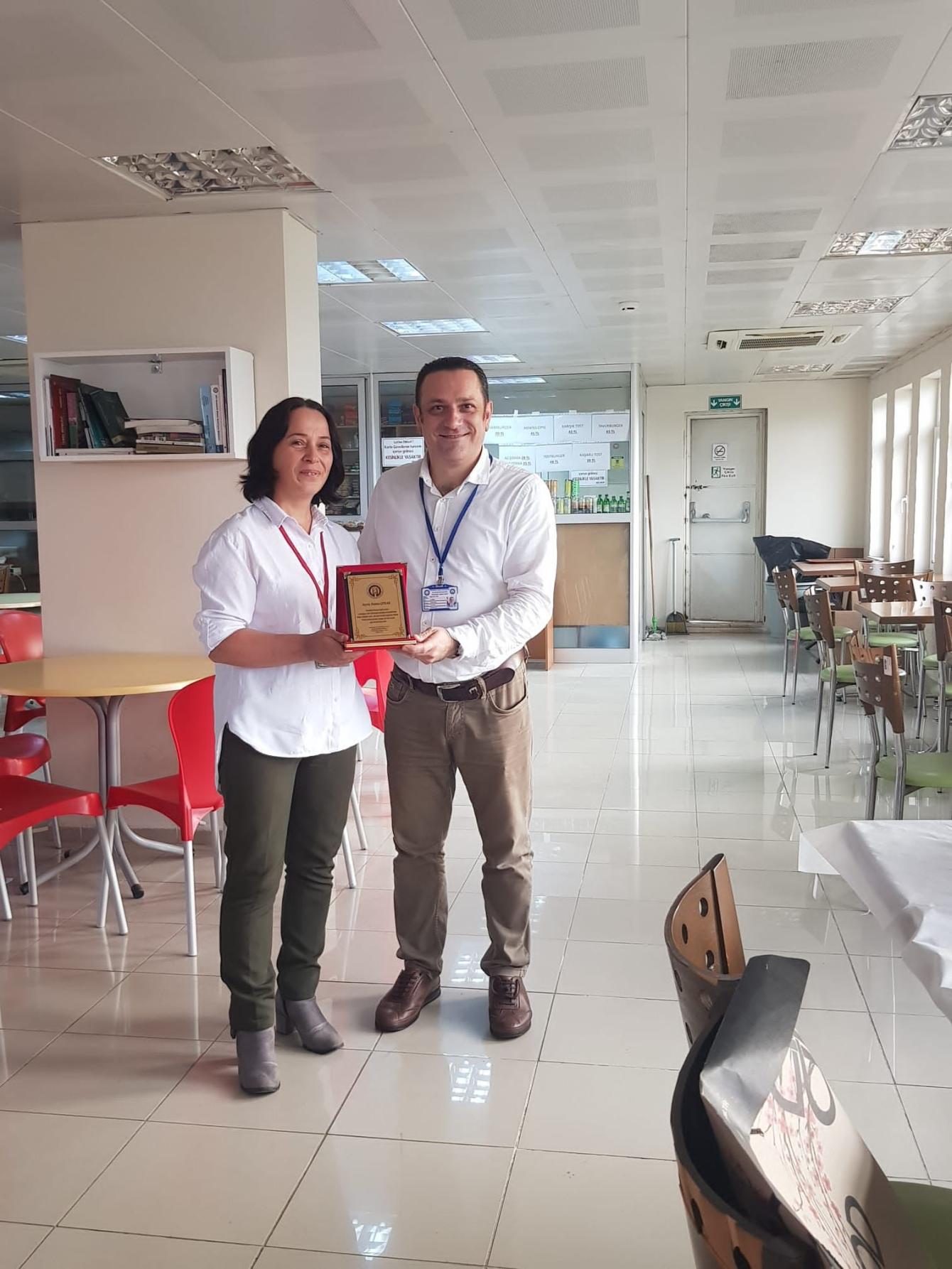 Fakültemiz personelinden Klinik Bilimleri Bölümü Endodonti Anabilim Dalı sekreterliği görevini yürütmekte iken Öğrenci İşleri Birimi’ne görevlendirilen Yeşim AYDIN, Restoratif Diş Tedavisi Anabilim Dalı sekreterliği görevini yürütmekte iken Kalite, İç Kontrol ve Stratejik Plan gibi spesifik konularla ilgilenmek üzere Yazı İşleri Birimi’nde görevlendirilen Nahide KUVVET ve Pedodonti Anabilim Dalı sekreterliği görevini yürütmekte iken Hasta Hakları Birimi’ne görevlendirilen Fatma ÇITLAK'a akademik ve idari personelin katılımıyla çalışmış oldukları dönem içerisinde göstermiş oldukları azim, başarı ve gayretlerinden ötürü plaket takdim edilmiştir.