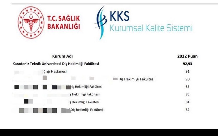 Sağlık Bakanlığı tarafından 05.12.2022 tarihinde geçirdiğimiz “Sağlıkta Kalite Standartları”degerlendirmesi sonucunda almış oldugu puan 92,93'tür. Bu kapsamda gerceklestirilen çalışmalara destek veren; SKS Bölüm Sorumlularına, Kalite Temsilcilerine, Anabilimi Dalı Başkanlarına, Kalite Yönetim Ekibine ve Fakültemizde kalite kültürünün oluşmasına emek veren tüm personelimize teşekkür ederiz.