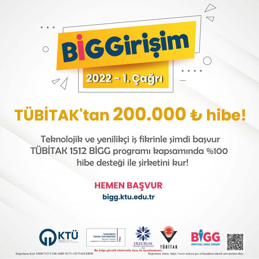 TÜBİTAK tarafından Uygulayıcı Kuruluş olarak yetkilendirilen Karadeniz Teknik Üniversitesi Teknoloji Transferi Uygulama ve Araştırma Merkezi (KTÜ TTM) ve Erzurum Teknik Üniversitesi(ETÜ) ortaklığında yürütülen BİGGirişim programına başvuru yapabilir, program kapsamında "İş Fikri Doğrulama", "İş Modeli", "İş Planı Hazırlama", "Etkili Sunum Teknikleri" vb. iş fikrinden şirket kurulum aşmasına kadar birçok alanda verilecek eğitim, danışmanlık ve mentorluk hizmetlerinden ücretsiz faydalanabilir, ayrıca Trabzon TEKNOKENT tarafından sunulan cazip fırsatlardan yararlanabilirsiniz.