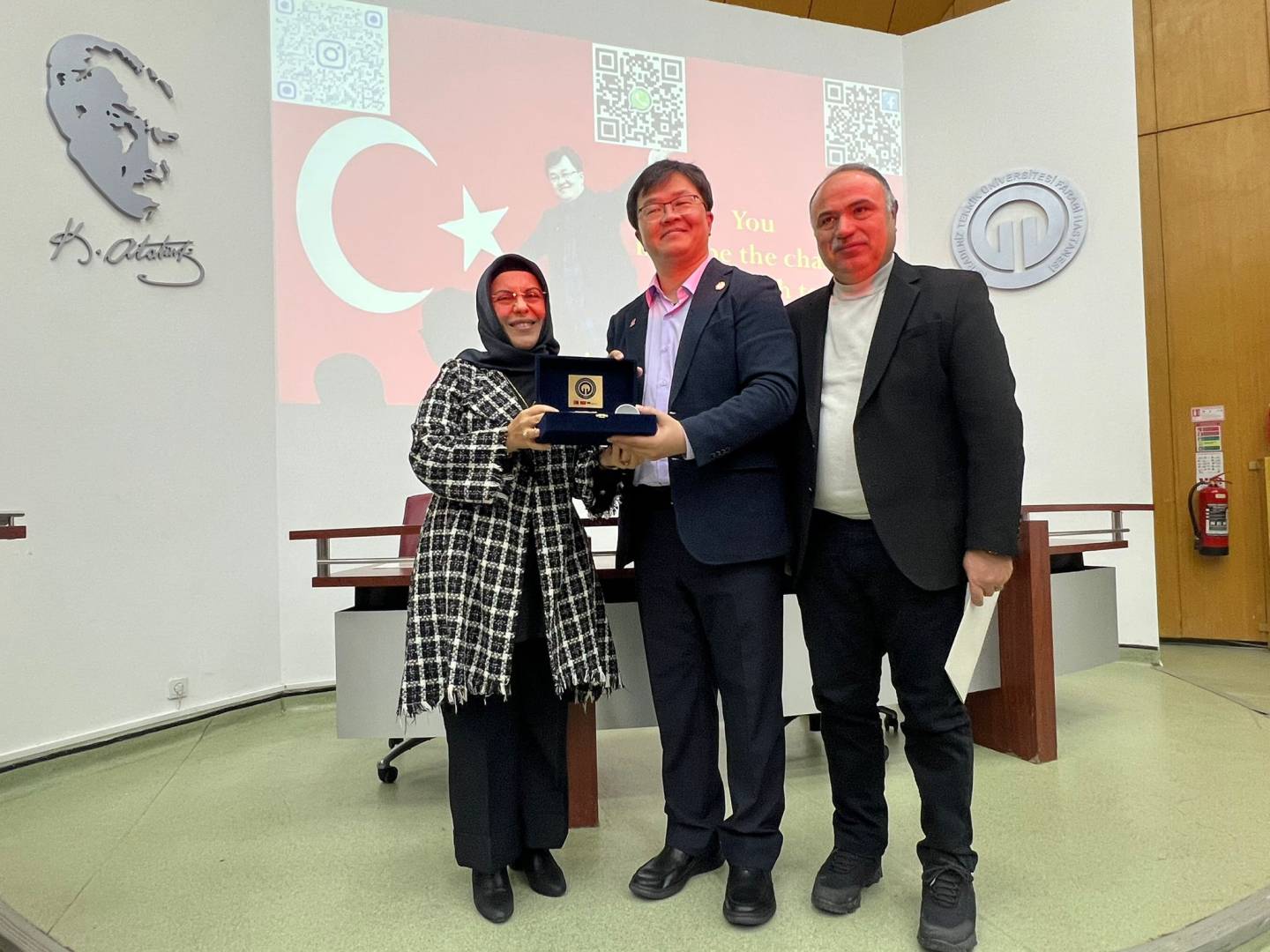 Dış İlişkiler Genel Koordinatörlüğü, Sağlık Bilimleri Enstitüsü ve Tıp Fakültesi Dekanlığı'nın ortak organizasyonuyla, 30 Ekim 2025 tarihinde Tıp Fakültesi Aydın İnal Amfisi'nde, Tayvan'da bulunan Chung Shan Sağlık Bilimleri Üniversitesi öğretim üyesi ve aynı zamanda Asya Tıbbi Teşhis Bilimi Topluluğu başkanlığını da yürütmekte olan Prof. Dr. Chi-Chang Chang tarafından "Yeni Nesil Sağlık Hizmeti Sunumu için Yapay Zeka Destekli Tıbbi Teşhis Bilimi" konulu seminer düzenlendi. Seminer bitiminde Prof. Dr. Chi-Chang Chang'a Tıp Fakültesi Dekanı Prof. Dr. Sevdegül AYDIN MUNGAN tarafından plaket takdim edildi ve Sağlık Bilimleri Enstitüsü Müdürü Prof. Dr. Sedat BOSTAN tarafından katılım sertifikası verildi. Etkinliğe Dış İlişkiler Genel Koordinatörü Prof. Dr. Sercan EROL ve Değişim Programları Koordinatörüğü ekibinden Öğr. Gör. Zehra ŞAHİN BEKTAŞ da katılım sağladılar.
