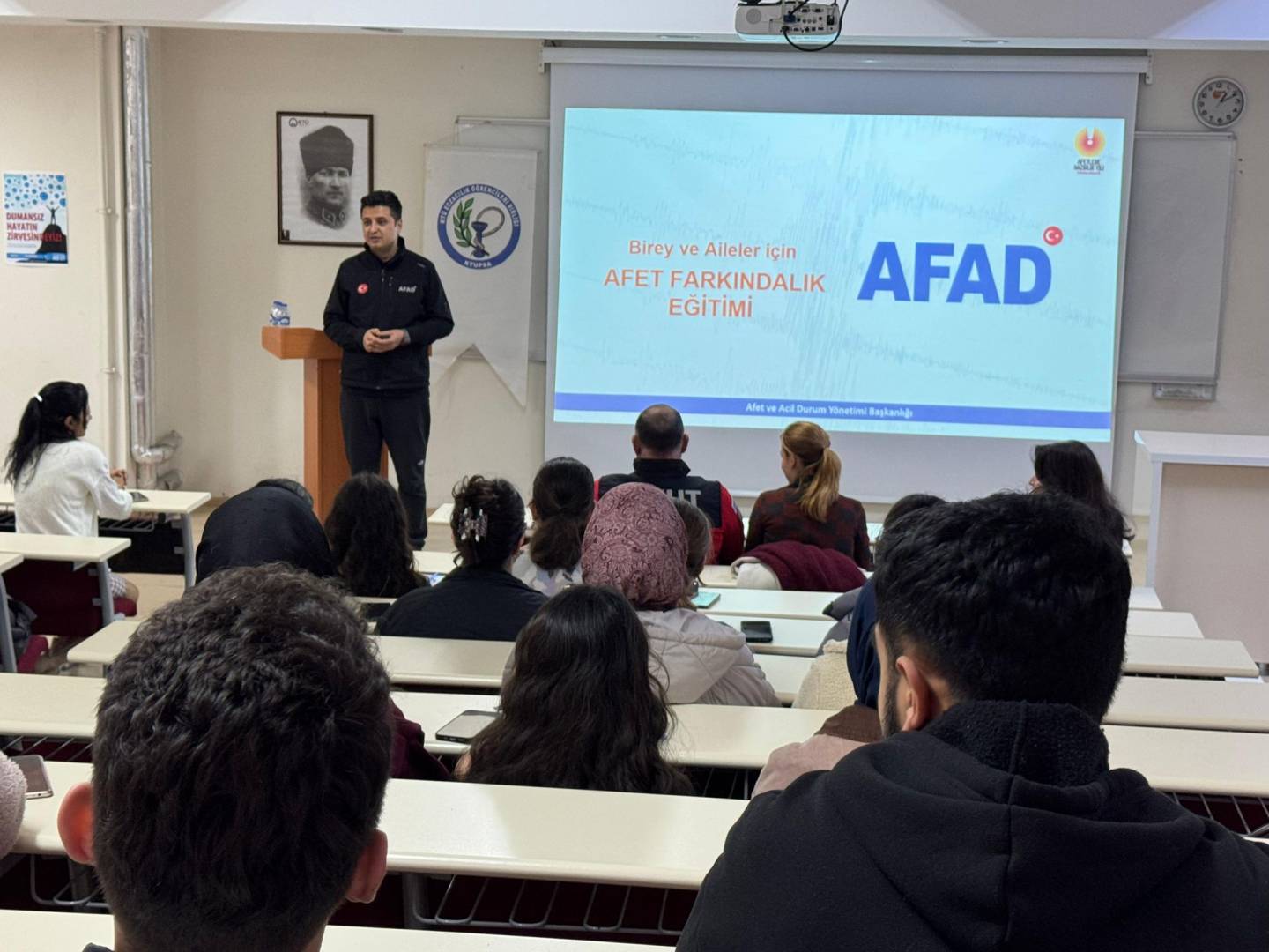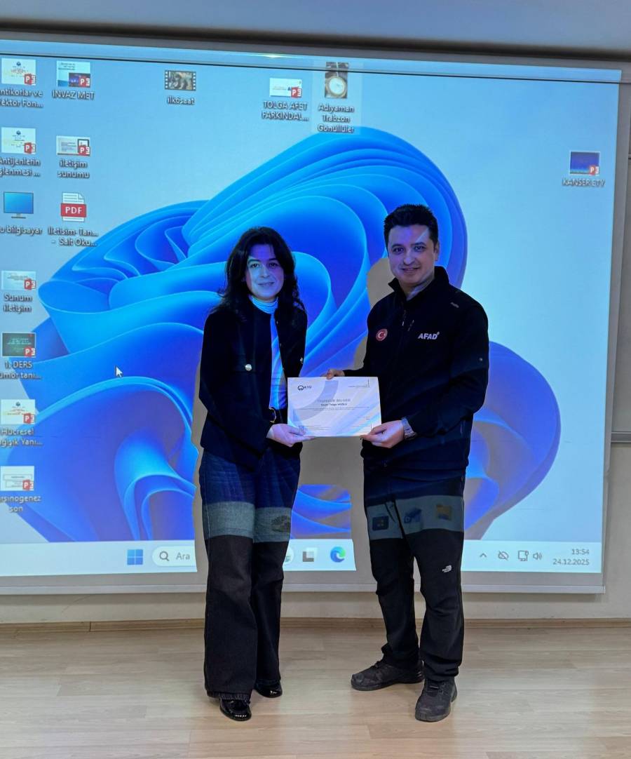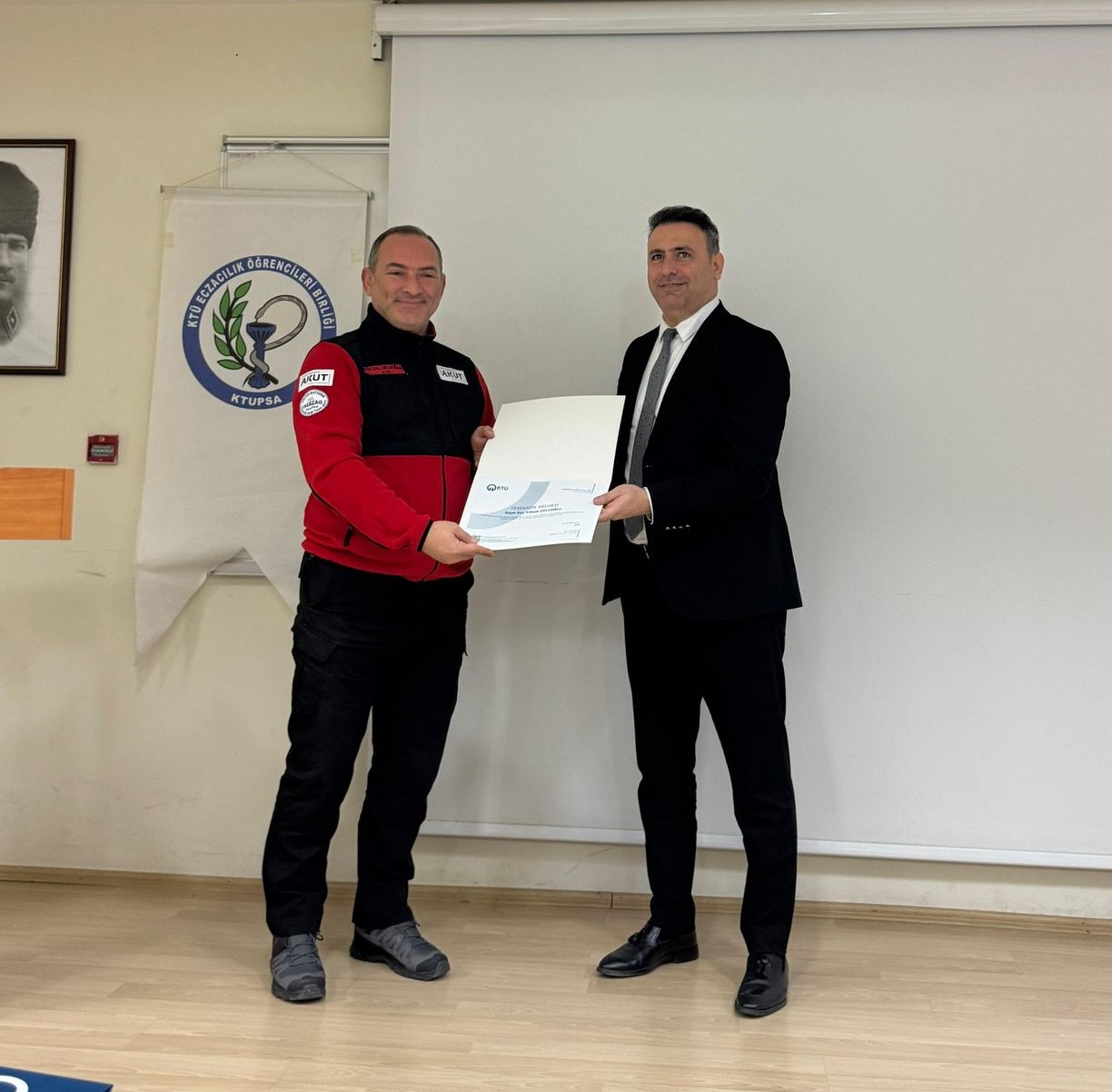 Fakültemiz öğrenci birliği KTUPSA iş birliğinde 24 Aralık 2025 tarihinde 18. Bölge Trabzon Eczacı Odası Başkanı sayın Ecz. Erhan BAŞER'in katılımlarıyla "Afet Yönetimi ve Eczacının Rolü" başlıklı etkinlik düzenlendi. Etkinlik kapsamında Trabzon İl Afet ve Acil Durum Müdürlüğü Eğitim Şube Müdürü Sayın Tolga MMUSLU ve AKUT Trabzon Ekip Lideri Ecz. Köksal OFLUOĞLU, afet bilinci ve afet durumlarında eczacıların üstlenebileceği kritik roller üzerine değerli bilgi ve deneyimlerini öğrencilerimizle paylaştılar.