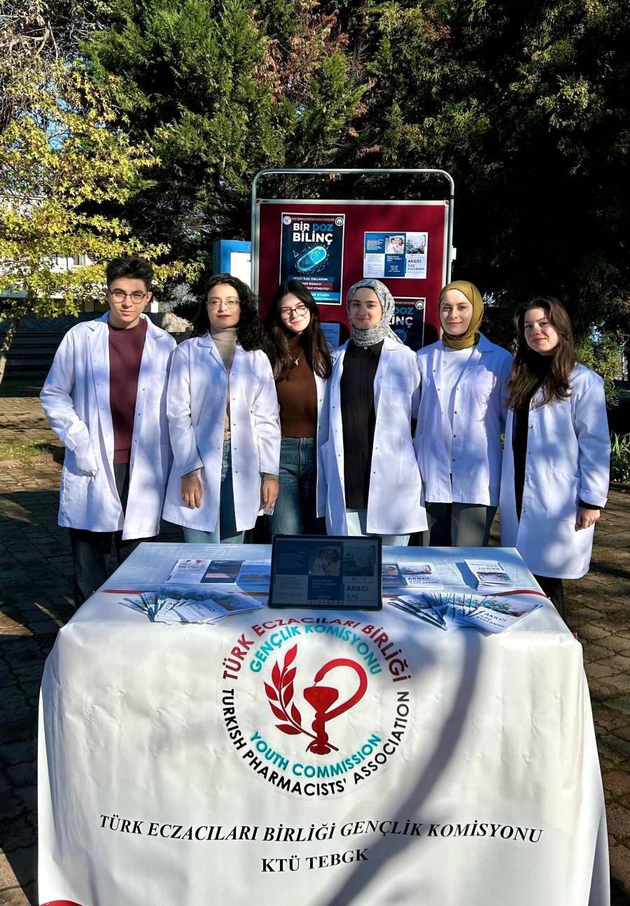 Fakültemiz Türk Eczacılık Birliği Gençlik Komisyonu (KTÜTEBGK) temsilci öğrencilerimiz tarafından yürülen "Bir Doz Bilinç" adlı sosyal sorumluluk projesi kapsamında Üniversitemiz Kanuni Kampüsü'nde 17 Aralık 2025 tarihinde “Akılcı İlaç Kullanımı” standı kuruldu.