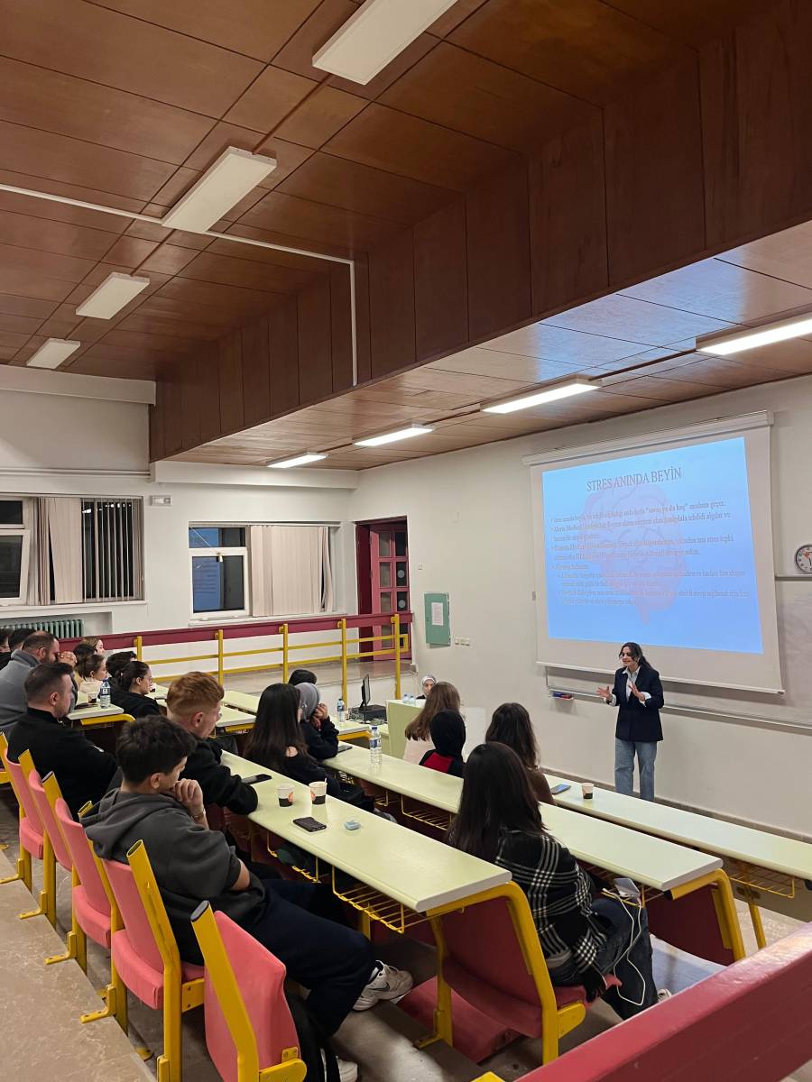 Etkinliğe Psikolog Cansın SAYLAM konuk oldu ve katılımcılara stresle başa çıkma, kaygı kontrolü ve kriz durumlarında doğru tutum geliştirme konularında değerli bilgiler paylaştı.