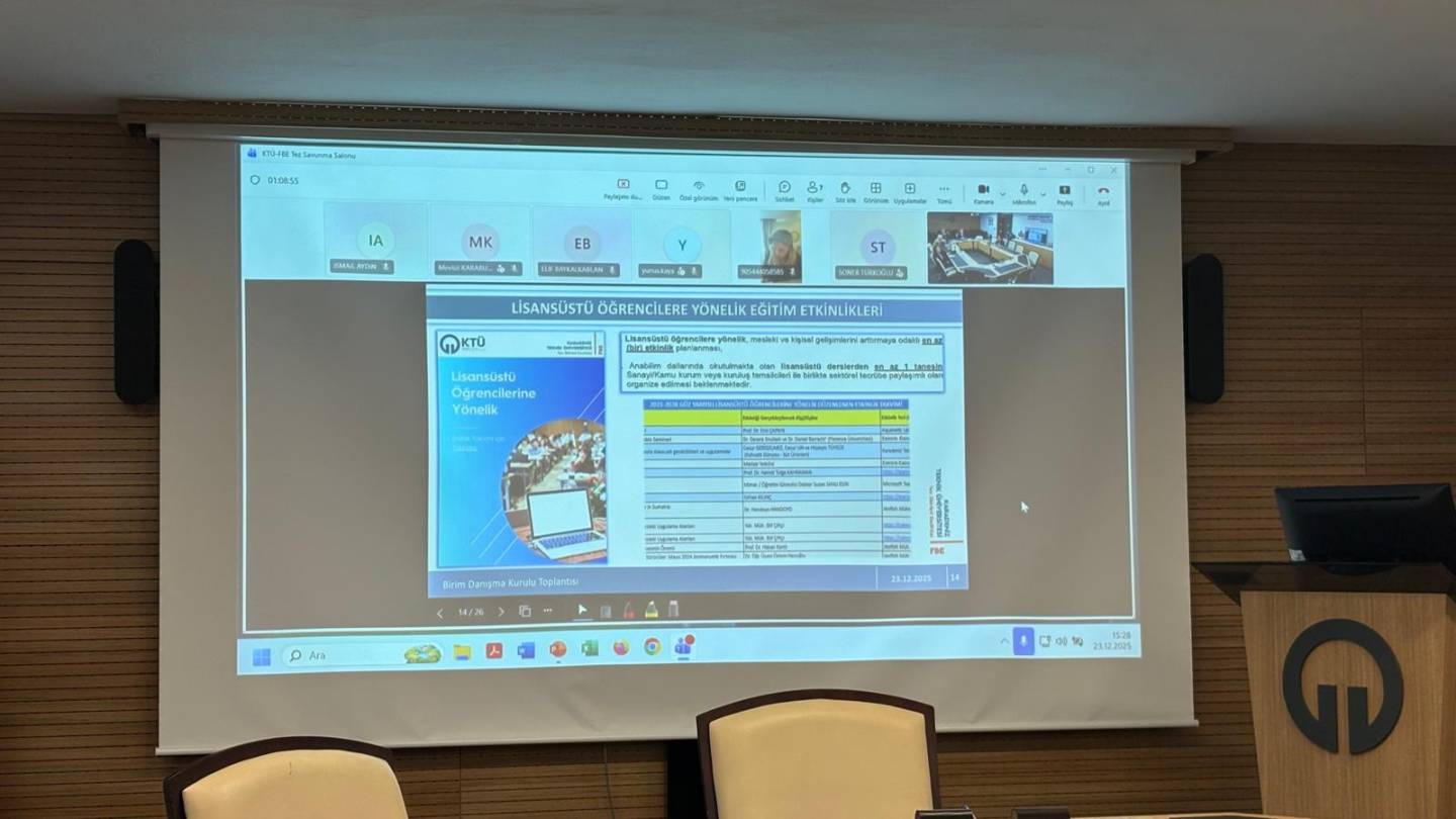 Paydaş katılımını güçlendirmeyi ve sürekli iyileştirme yaklaşımını esas alan bu toplantı, enstitümüzün kalite odaklı yönetim anlayışına önemli katkılar sağlamıştır. Fen Bilimleri Enstitüsü olarak, dış paydaşlarımızla sürdürülebilir iş birliğini destekleyen danışma kurulu toplantılarının düzenli olarak gerçekleştirilmesi hedeflenmektedir.
