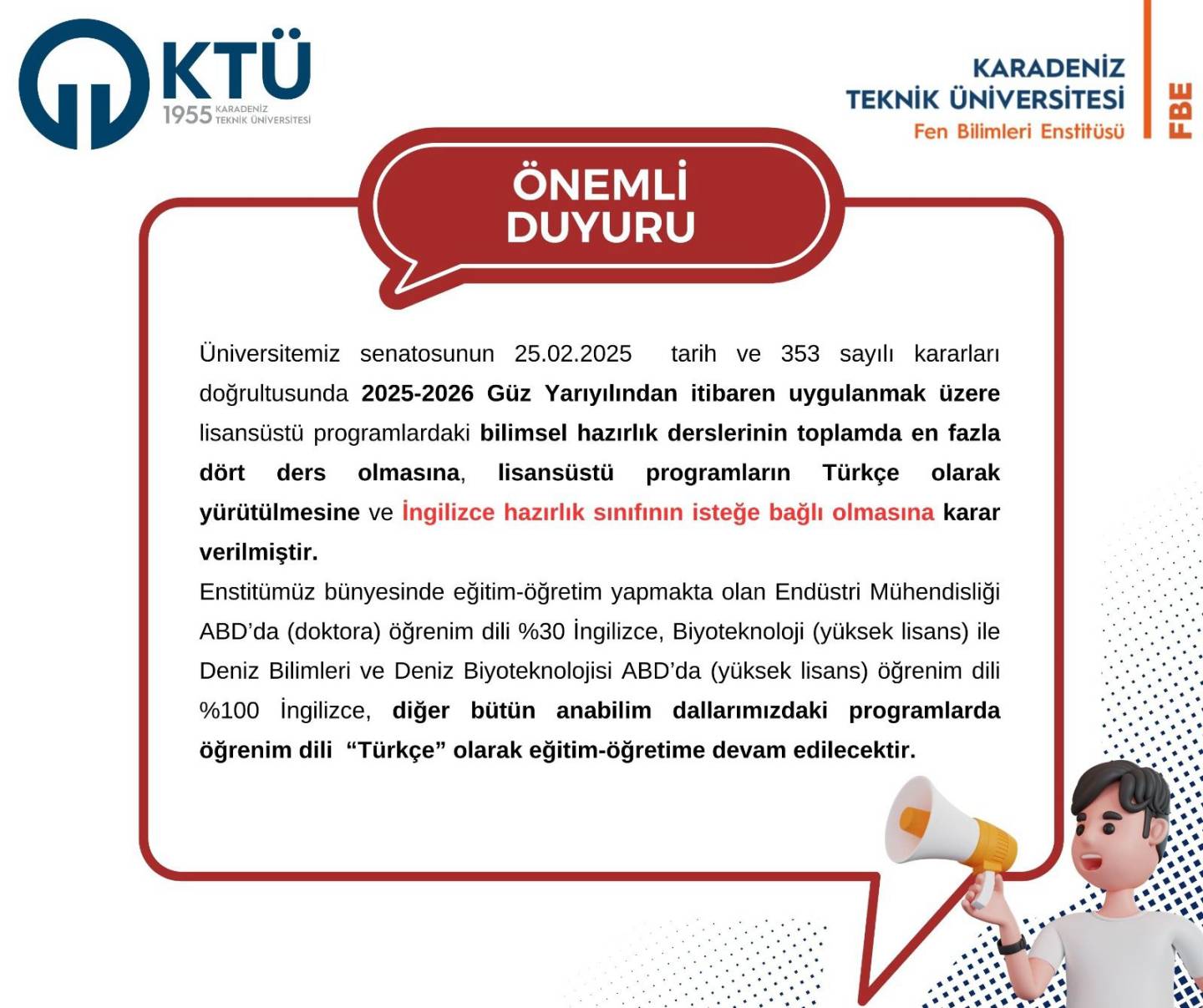 Yeni Kayıt Olan Lisansüstü Öğrenciler İçin Bilgilendirme