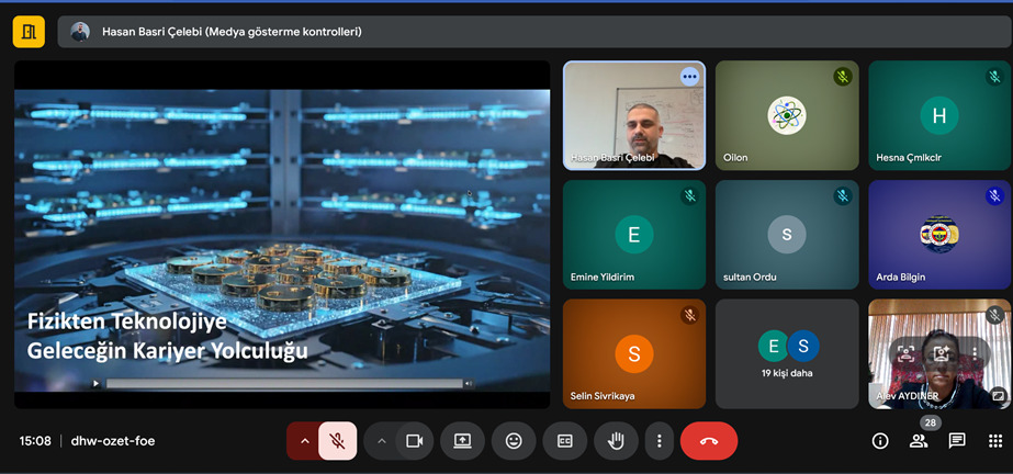 Karadeniz Teknik Üniversitesi Fen Fakültesi Fizik Bölümü tarafından düzenlenen "Sektör Temsilcisi Derste" etkinliği kapsamında, 2013 mezunumuz ve MDP Group Entegrasyon Grup Müdürü Hasan Basri ÇELEBİ, fizik öğrencileriyle çevrim içi bir söyleşide buluştu. "Fizikçiler İçin Yeni Çağ: Kodlamanın Ötesine Geçmek" başlıklı etkinlik, 10 Aralık 2025 Çarşamba günü saat 15.00’te Prof. Dr. Alev AYDINER sorumluluğunda yürütülen FIZ2027 Fizikte Bilgisayar Programlama dersi kapsamında gerçekleştirildi.