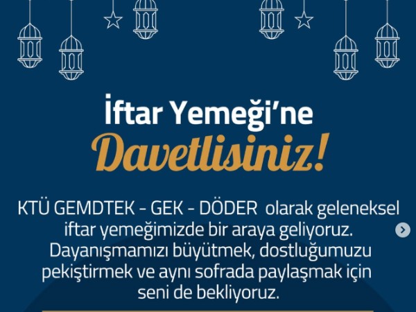 KTÜ Gemi İnşaatı ve Deniz Teknolojileri Kulübü (GEMDTEK), Denizci Öğrenciler Derneği (DÖDER) ve Gemi Etkinlikleri Kulübü (GEK) birlikte 08.03.2026 tarihinde iftar programı düzenledi.