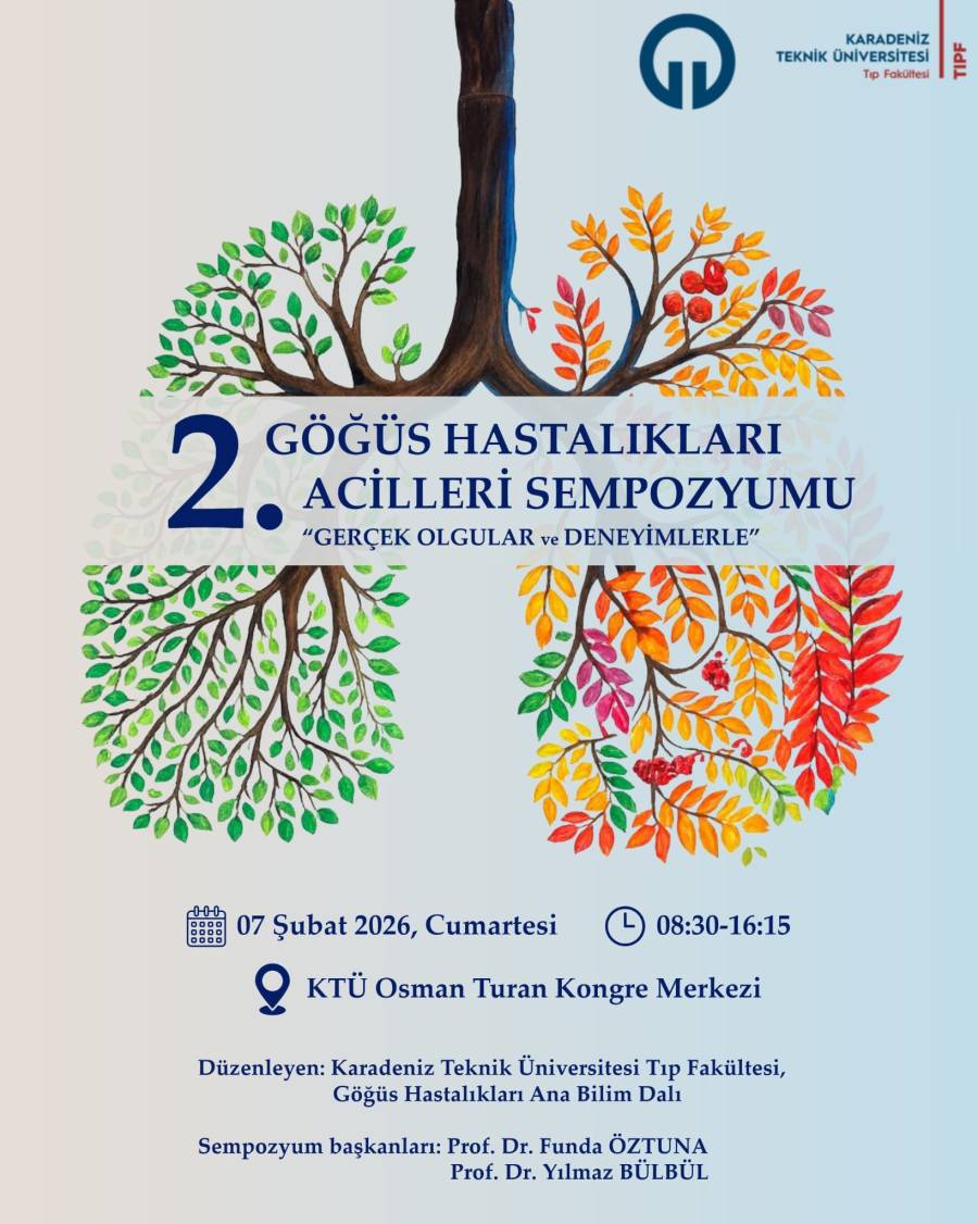 7 Şubat 2026 Tarihinde "2. Göğüs Hastalıkları Acilleri Sempozyumu : Gerçek Olgular ve Deneyimlerle" Sempozyumu Düzenlenecektir
