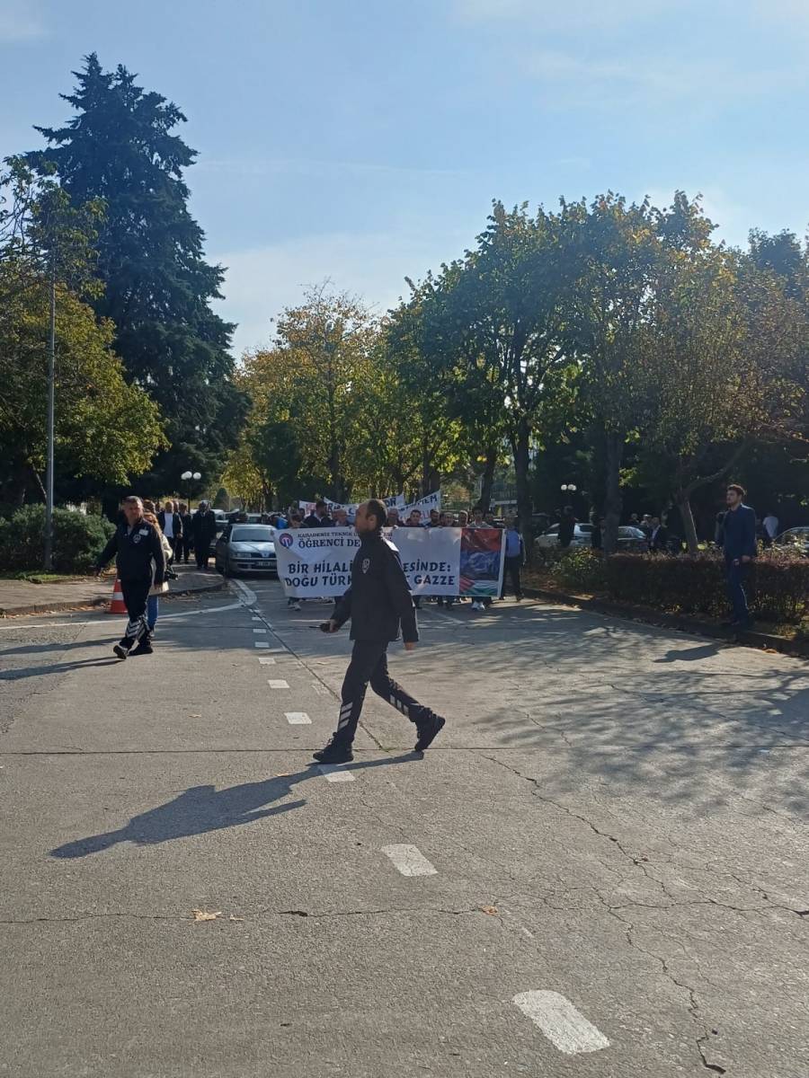 Karadeniz Teknik Üniversitesi Öğrenci Derneği tarafından Doğu Türkistan ve Gazze de yaşanan insanlık dramına dikkat çekmek ve mazlum coğrafyalardaki kardeşlerimize destek olmak amacıyla bir farkındalık yürüyüşü düzenlenmiştir. Çok sayıda öğrenci ve personelin de katılımıyla gerçekleştirilen etkinlik kapsamında İktisadi ve İdari Bilimler Fakültesi önünden başlayarak Faik Ahmet Barutçu Kütüphanesi önüne kadar yürüyen grup bu alanda basın açıklaması yaparak dağılmıştır. Etkinlik süresince hem Kanuni Kampüsü içinde trafik akışının aksamaması hemde Anayasal hakların kullanılmasına bir engel oluşmaması için Şube Müdürlüğümüzce yoğun güvenlik önlemi alınmıştır.