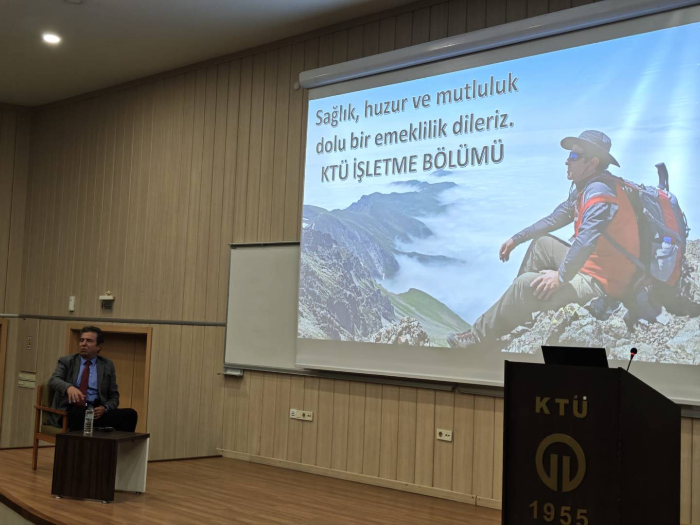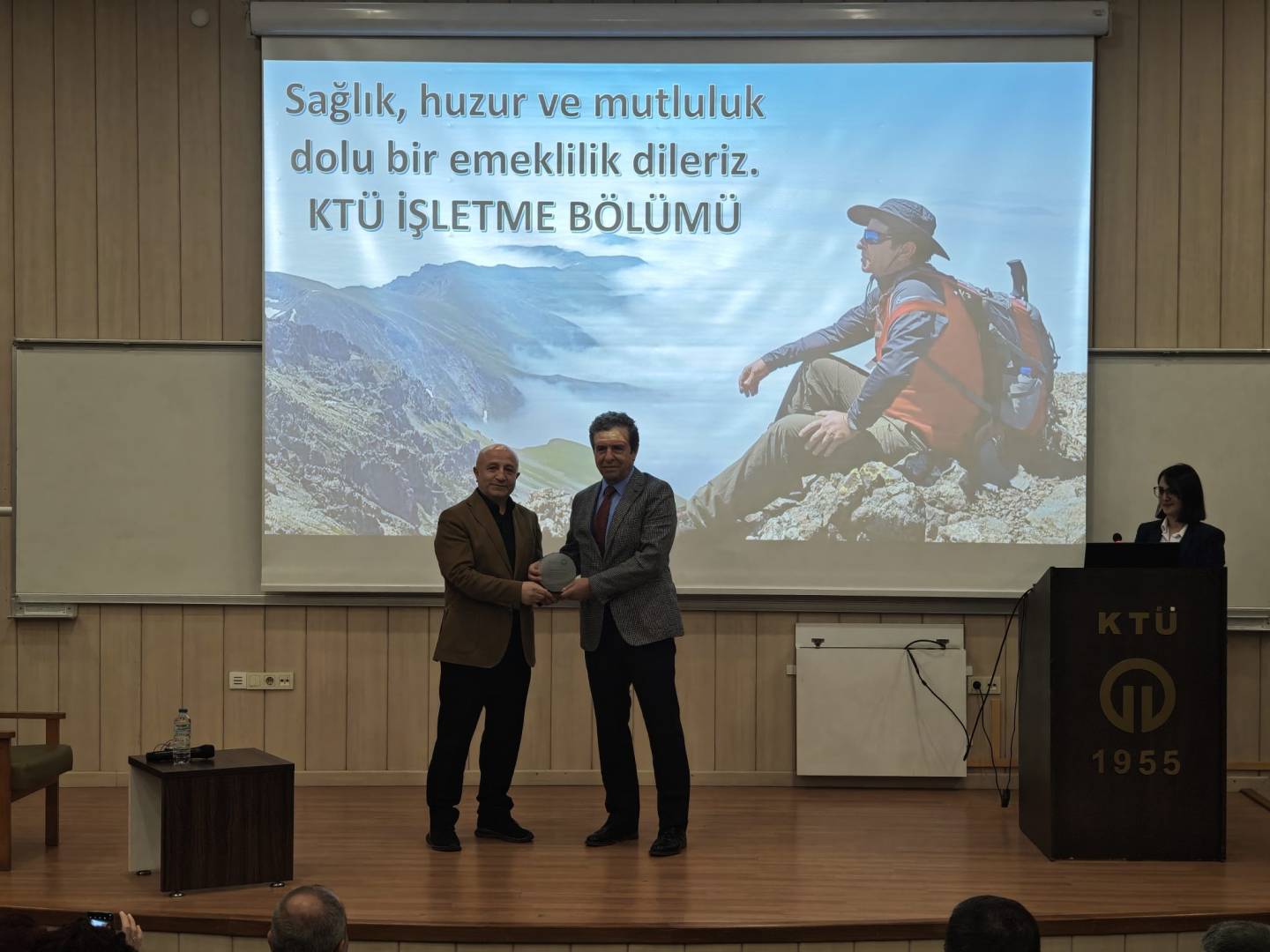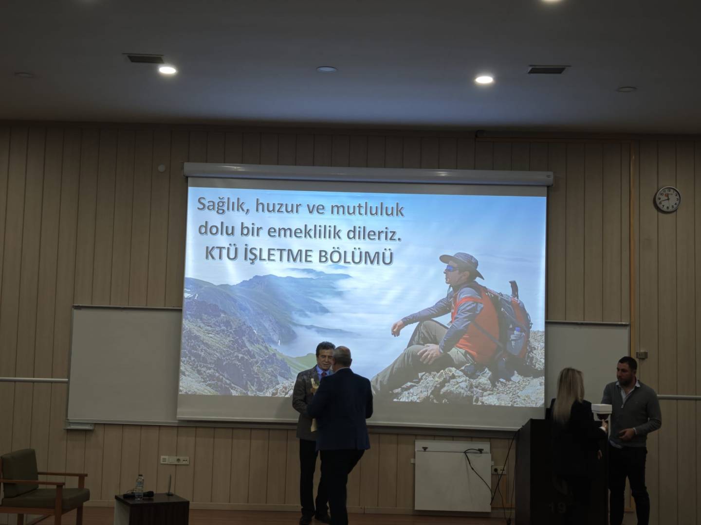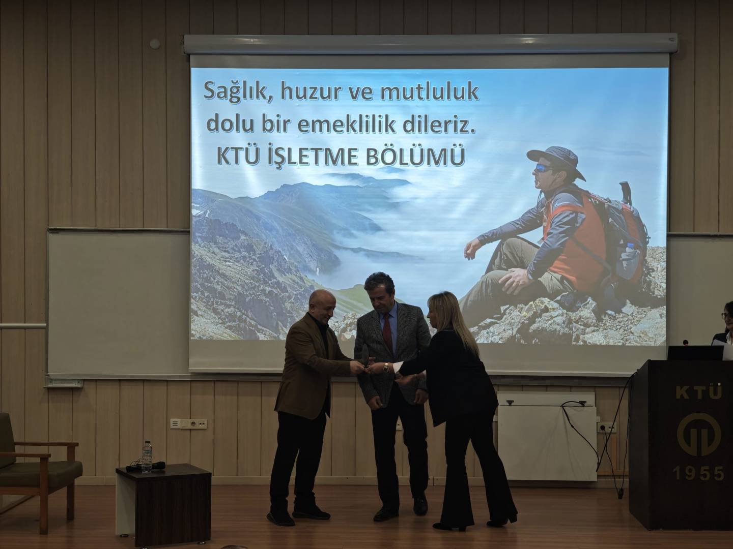 Karadeniz Teknik Üniversitesi İİBF İşletme Bölümü öğretim üyesi Prof. Dr. Mustafa EMİR için Amfi-3'te anlamlı bir veda töreni gerçekleştirilerek emekliliği tebrik edildi.