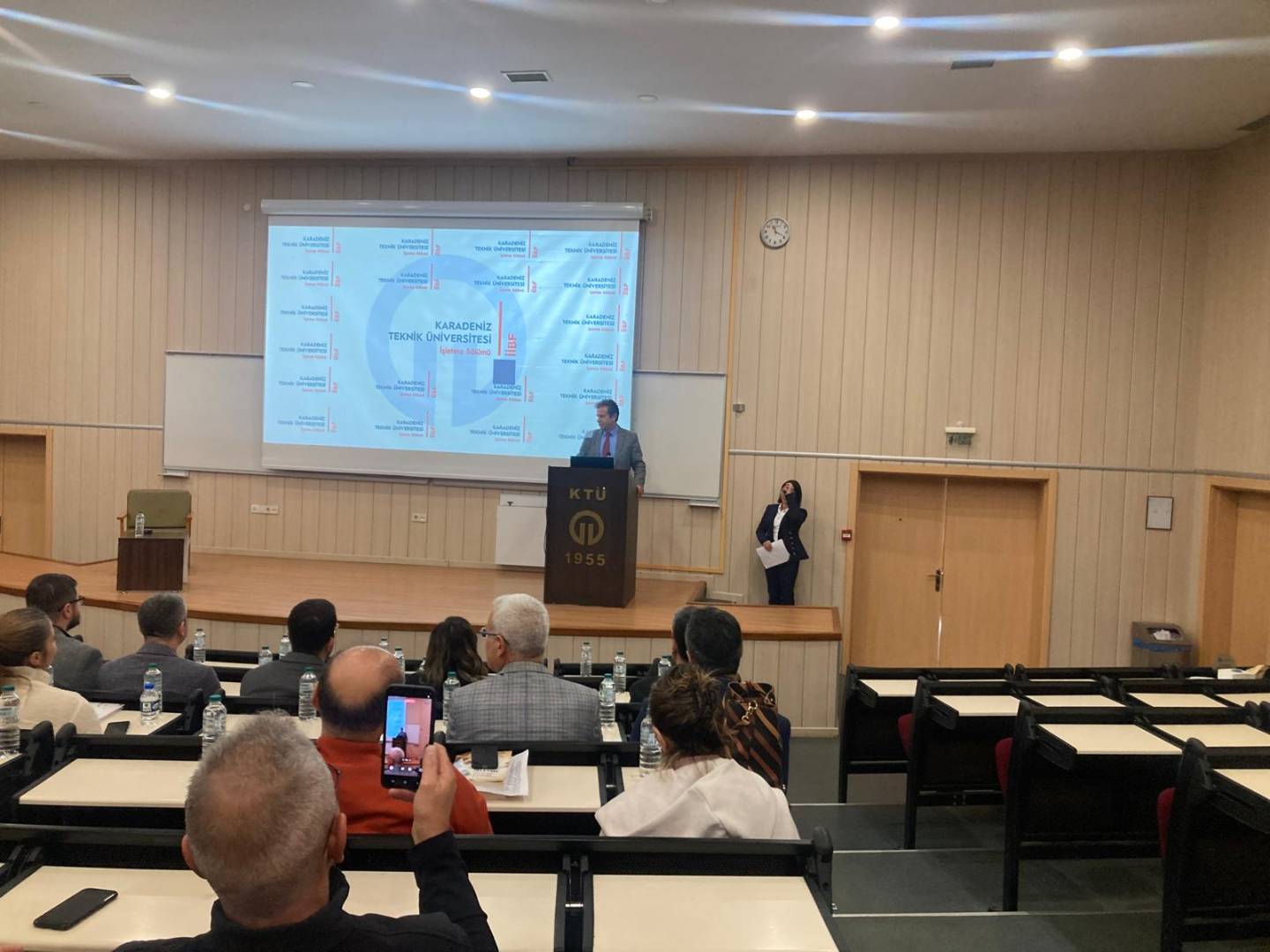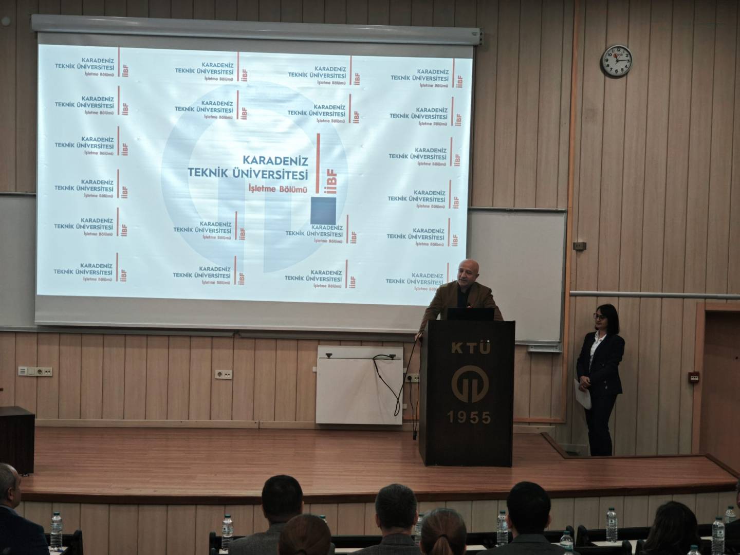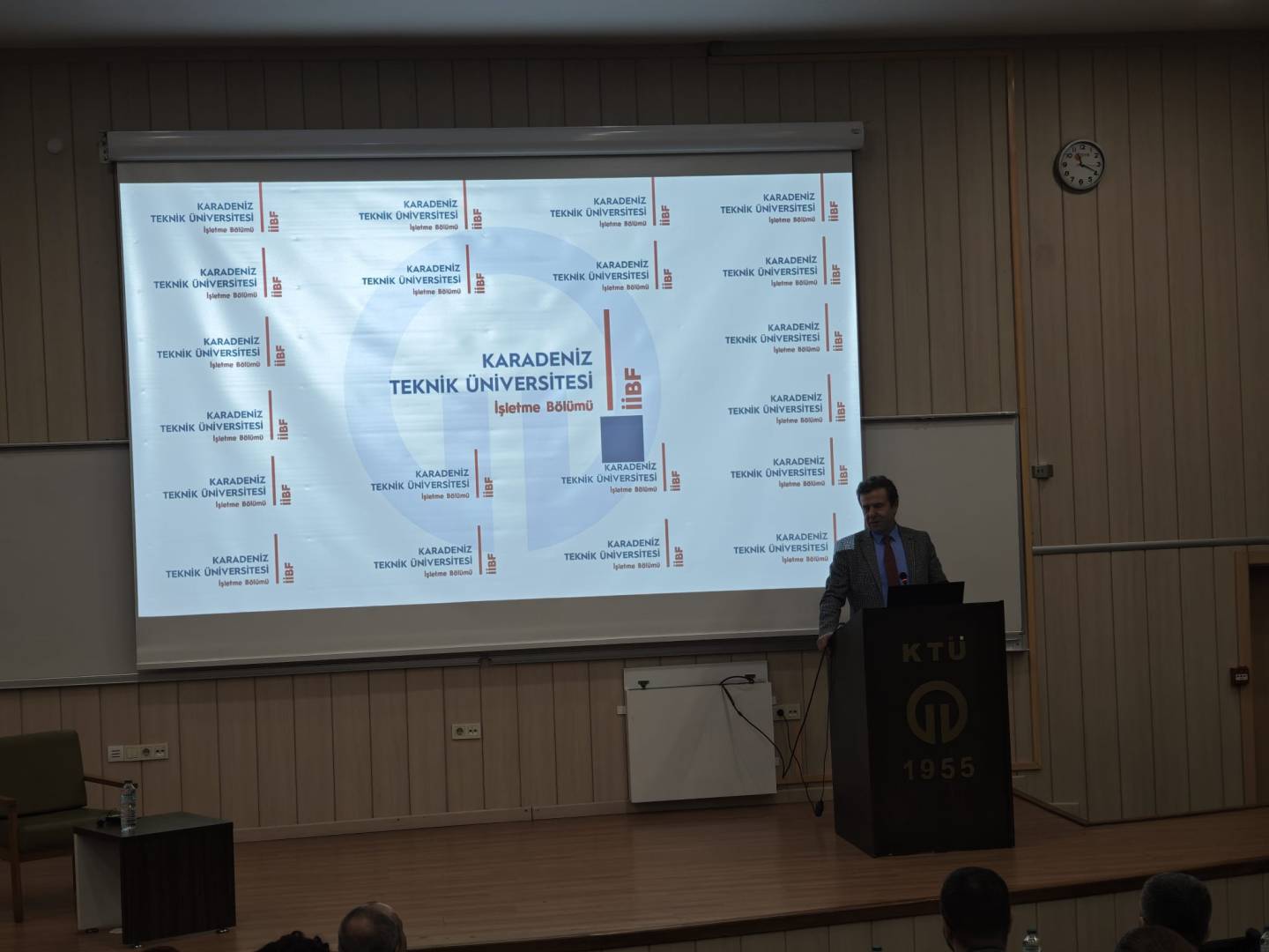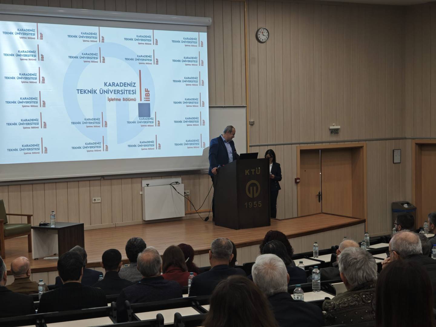 Karadeniz Teknik Üniversitesi İİBF İşletme Bölümü öğretim üyesi Prof. Dr. Mustafa EMİR için Amfi-3'te anlamlı bir veda töreni gerçekleştirilerek emekliliği tebrik edildi.
