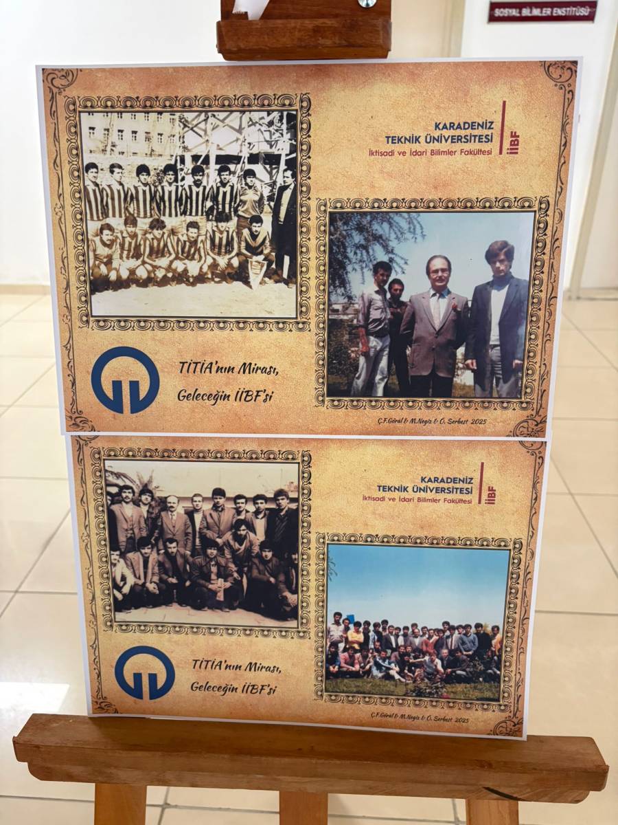 "Tarihten İİBF’ye Bir Köprü: Dün, Bugün, Gelecek Fotoğraf Sergisi" başlıklı sergi Karadeniz Teknik Üniversitesi İİBF İşletme Bölümü Arş. Gör. Muhammet NEGİZ'in ulaştığı belgelerden bir seçki, KTÜ İİBF Bilgi İşlem Sorumlusu Özgür SERBEST'in düzenlemeleri ve KTÜ İktisadi ve İdari Bilimler Fakültesi Sekreteri Çidem FETVACIOĞLU GÖRAL'ın katkılarıyla hazırlandı. KTÜ İktisadi ve İdari Bilimler Fakültesinin kuruluşuna kadar geçen sürede 1978 tarihinde Trabzon İktisadi ve Ticari İlimler Akademisi (TİTİA) çatısı altında faaliyetlerine başlaması ve 12 Eylül 1980 darbesi sonrasında İİBF'ye dönüştürülerek önce Karadeniz Üniversitesi (KÜ) ve sonra Karadeniz Teknik Üniversitesi (KTÜ) bünyesinde faaliyetlerine devam etmesinin hikayesini aktaran sergi, bugün KTÜ Sosyal Bilimler Enstitüsü girişinde ziyarete açıldı. 18 Aralık 2025 tarihinden itibaren de KTÜ İİBF öğrenci girişinde görücüye çıkan sergi, misafirlerini tarihi bir yolculuğa davet ediyor.