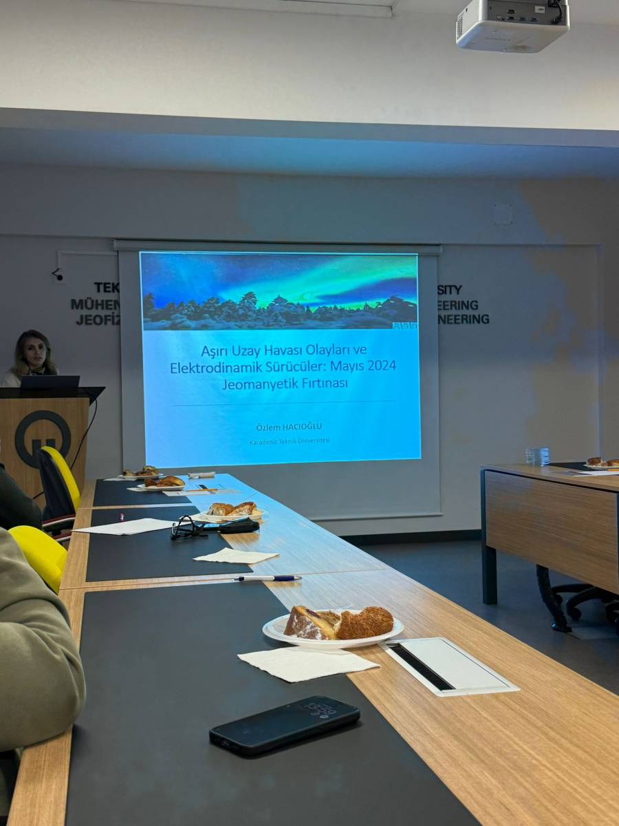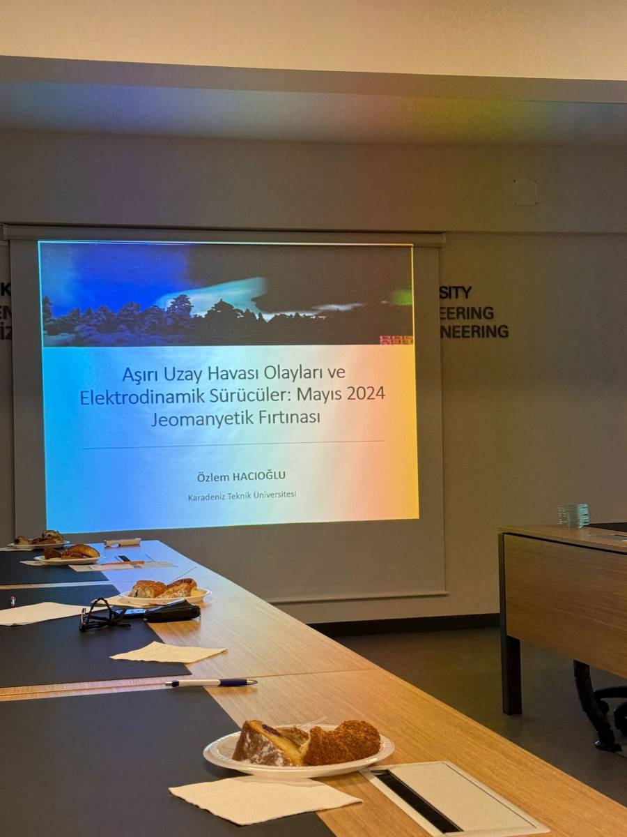 Bölüm içi seminerler kapsamında bölümümüz öğretim üyesi Dr. Öğr. Üyesi Özlem HACIOĞLU hocamız tarafından ''Aşırı Uzay Havası Olayları ve Elektrodinamik Sürücüler: Mayıs 2024 Jeomanyetik Fırtınası'' konulu Seminer gerçekleştirilmiştir.