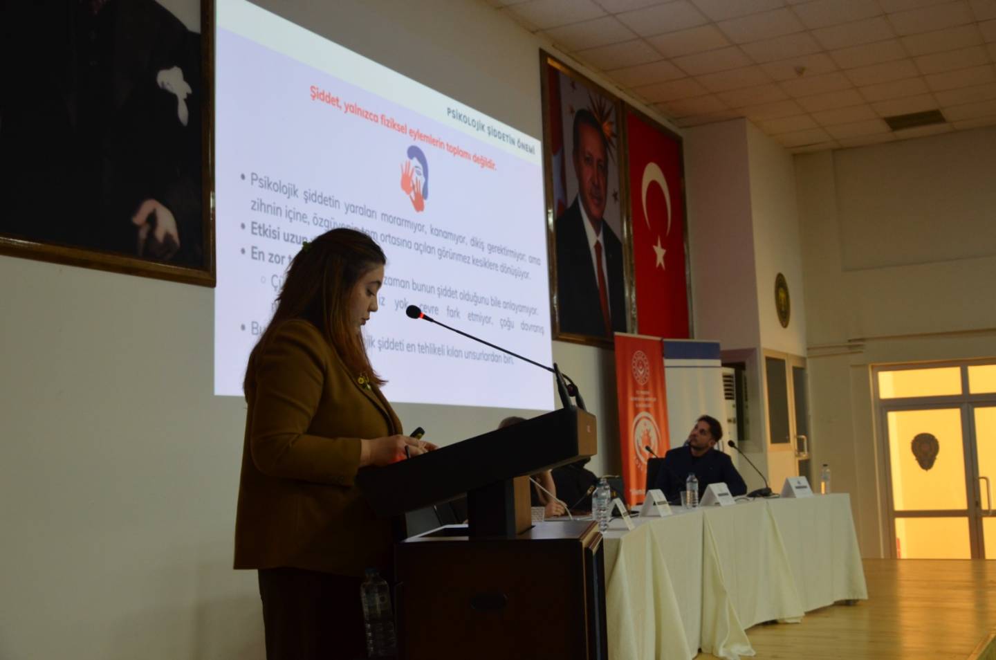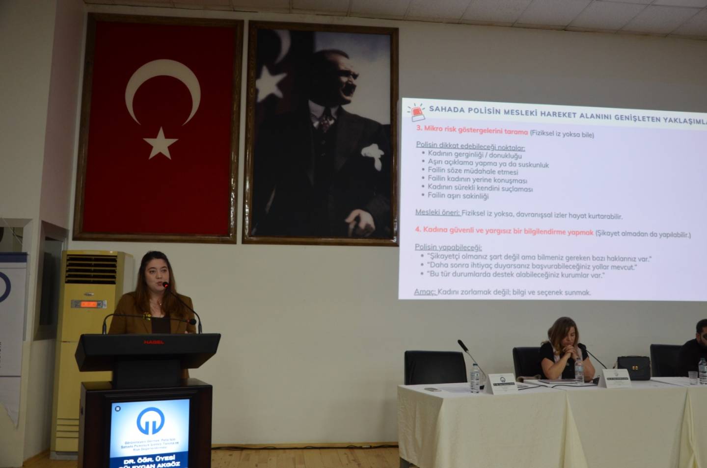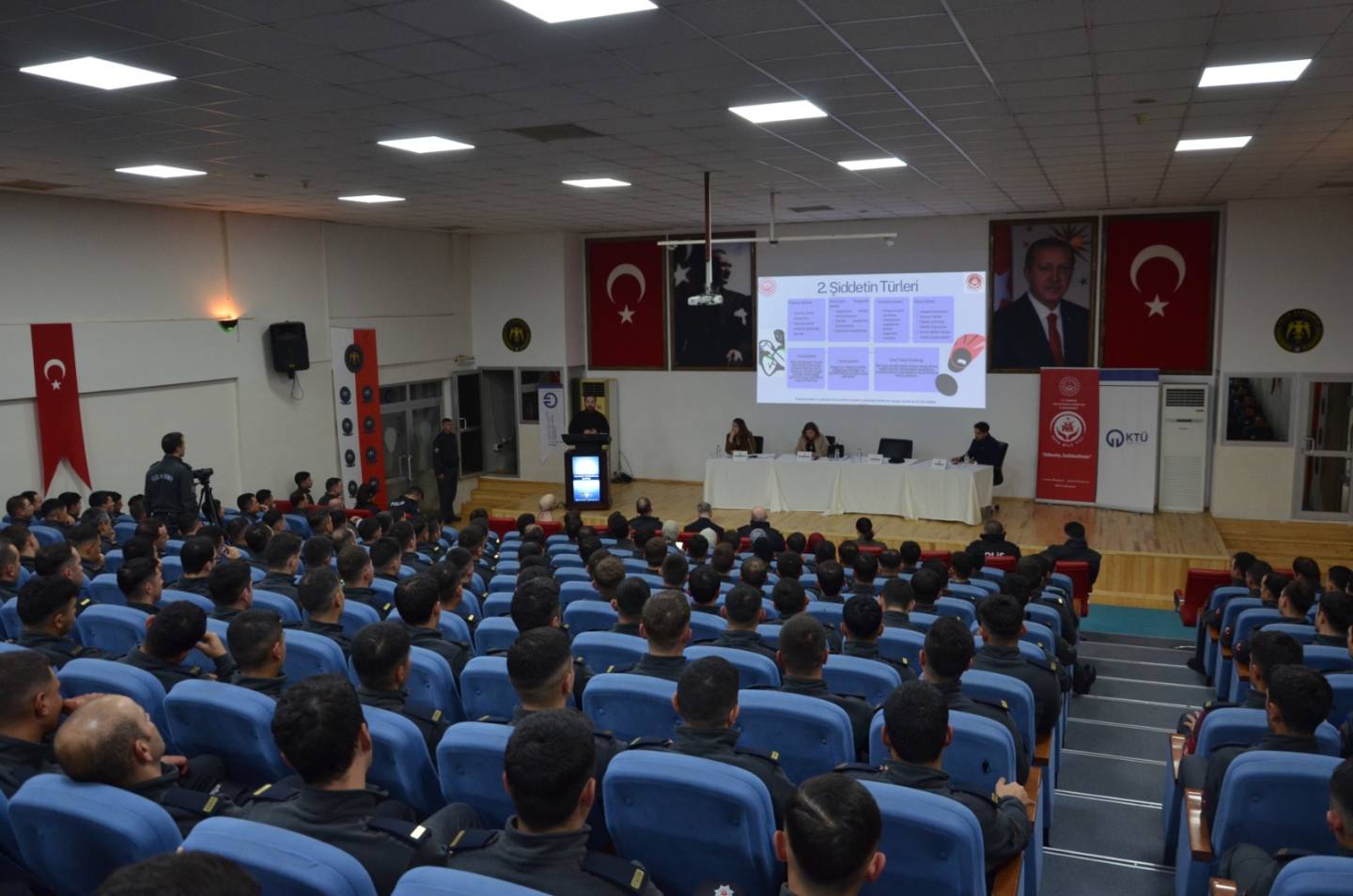 Panelde;Doç. Dr. Seda Gayretli Aydın (Trabzon Üniversitesi Hukuk Fakültesi) “Kadına Karşı Şiddetin Dijital Yüzü: Yapay Zekâ ve Cinsiyet”, Dr. Öğr. Üyesi Güleycan Akgöz (KTÜ Psikoloji Bölümü) “Görünmeyeni Görmek: Polis İçin Sahada Psikolojik Şiddeti Tanıma ve Risk Değerlendirmesi” başlıklı sunumuyla moderatörlük görevini, Tolunay Bayraktar Kayacı (Trabzon Aile ve Sosyal Hizmetler İl Müdürlüğü – Akçaabat Sosyal Hizmet Merkezi) “Israrlı Takip”,Öğr. Gör. Burak Bayrak (Avrasya Üniversitesi Psikoloji Bölümü) ise “Öfke Kontrolü ve Öfke Yönetimi” başlıklı sunumlarıyla katkı sundu. Etkinlik, soru-cevap bölümünün ardından sona erdi.