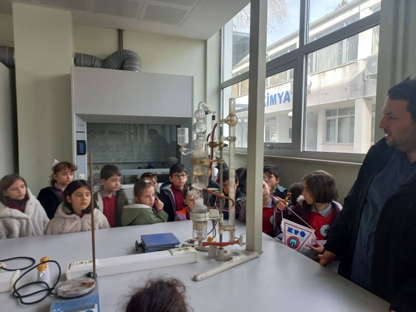 Tanıtımın ardından öğrenciler, bölüm laboratuvarlarını gezdi. Laboratuvarlarda yürütülen çalışmalar hakkında bilgi verilerek, deneylerde kullanılan cihaz ve malzemeler tanıtıldı. Öğrencilere bilimsel çalışmaların temel aşamaları anlatılırken, kimya biliminin günlük hayattaki yeri ve önemi de örneklerle aktarıldı. Yapılan açıklamalar sırasında öğrencilerin yoğun ilgi gösterdiği, merak ettikleri konular hakkında sorular sordukları gözlendi.