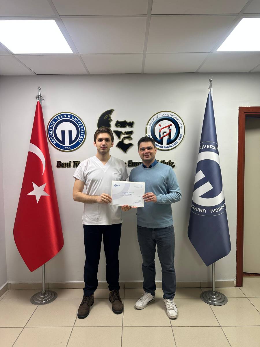 Belge takdim töreni, kongre başkanı ve Fakültemiz Klinik Bilimleri Bölümü Ağız, Diş ve Çene Cerrahisi Anabilim Dalı öğretim üyesi Doç. Dr. Efe Can Sivrikaya tarafından gerçekleştirildi. Doç. Dr. Sivrikaya, öğrencileri özverili çalışmaları ve etkinliğin düzenlenmesine sağladıkları destek nedeniyle tebrik ederek, akademik ve mesleki gelişimlerine katkı sunan bu tür organizasyonlarda aktif rol almanın önemini vurguladı.