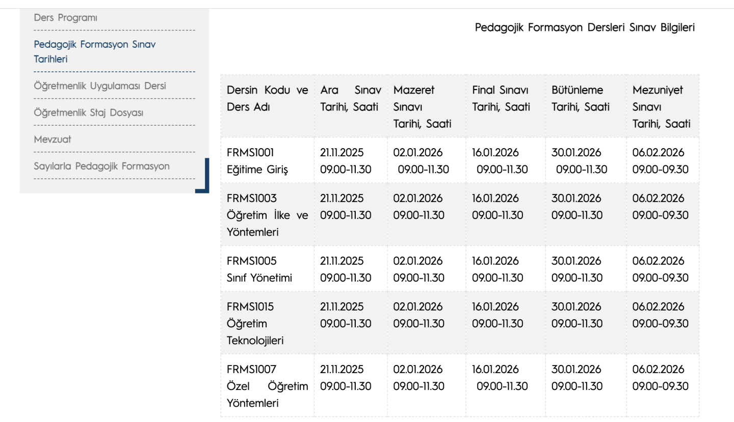 2025-2026 Güz Dönemi Lisans Eğitimi ile İlgili Tüm Programlar ve Duyurular