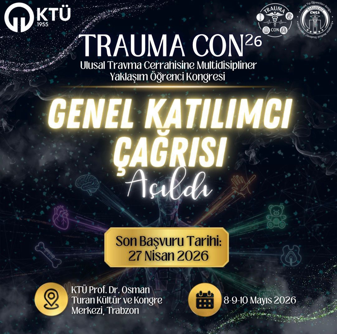 EMSA Karadeniz ev sahipliğinde düzenlenecek olan Ulusal Travma Cerrahisine Multidisipliner Yaklaşım Öğrenci Kongresi (TraumaCon’26) için genel katılımcı başvuruları açıldı. Kongre, 8-9-10 Mayıs 2026 tarihlerinde Trabzon’da gerçekleştirilecek.