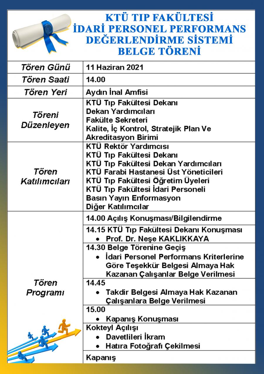 KTÜ Tıp Fakültesi İdari Personel Performans Değerlendirme Sistemi Belge Töreni