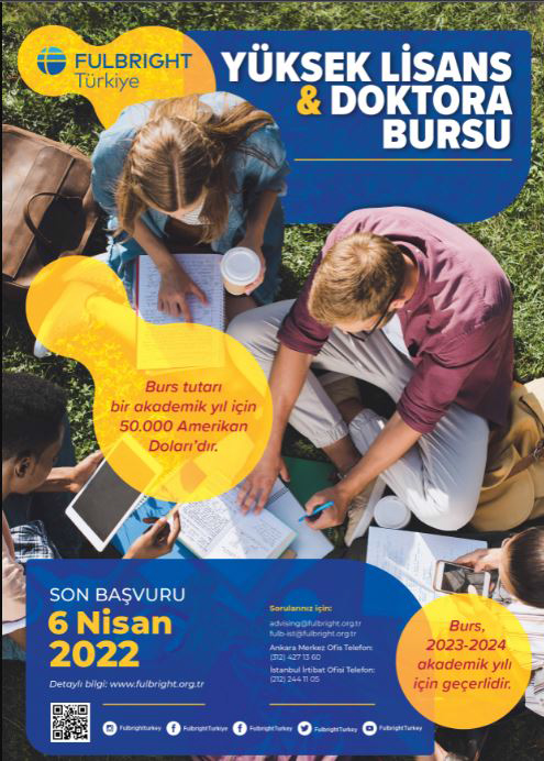 Türkiye-Amerika Birleşik Devletleri Kültürel Mübadele Komisyonu, bilinen adıyla Türkiye Fulbright Eğitim Komisyonu, Türk ve Amerikalı üniversite mezunları, araştırmacılar ve bilim insanları arasındaki eğitim ve kültürel değişim programlarını desteklemek amacıyla 1949 yılında Türkiye ve A.B.D. arasında imzalanan ikili bir anlaşma ile kurulmuştur ve bütçesi iki ülke hükümetlerinin katkılarıyla sağlanmaktadır. Komisyon, iki ülke vatandaşları arasındaki karşılıklı anlayış ve saygıyı, kültürel değişim yolu ile güçlendirmeyi amaçlamaktadır. Komisyon, lisansüstü eğitimlerini Amerika Birleşik Devletleri'nde yapmak isteyen öğrencilere ve mezunlara yönelik olarak Yüksek Lisans ve Doktora Bursları vermektedir. 2023-2024 akademik yılı güz döneminde başlamak üzere verilecek olan burslara son başvuru tarihi 6 Nisan 2022'dir. Komisyon, iki yıl süren burs programları için, yılda en fazla $50.000 kadar maddi destek vermektedir. Burs programına başvurmayı düşünen öğrenciler ayrıntılı bilgi ve başvuru formuna www.fulbright.org.tr adresinden ulaşabilirler. |