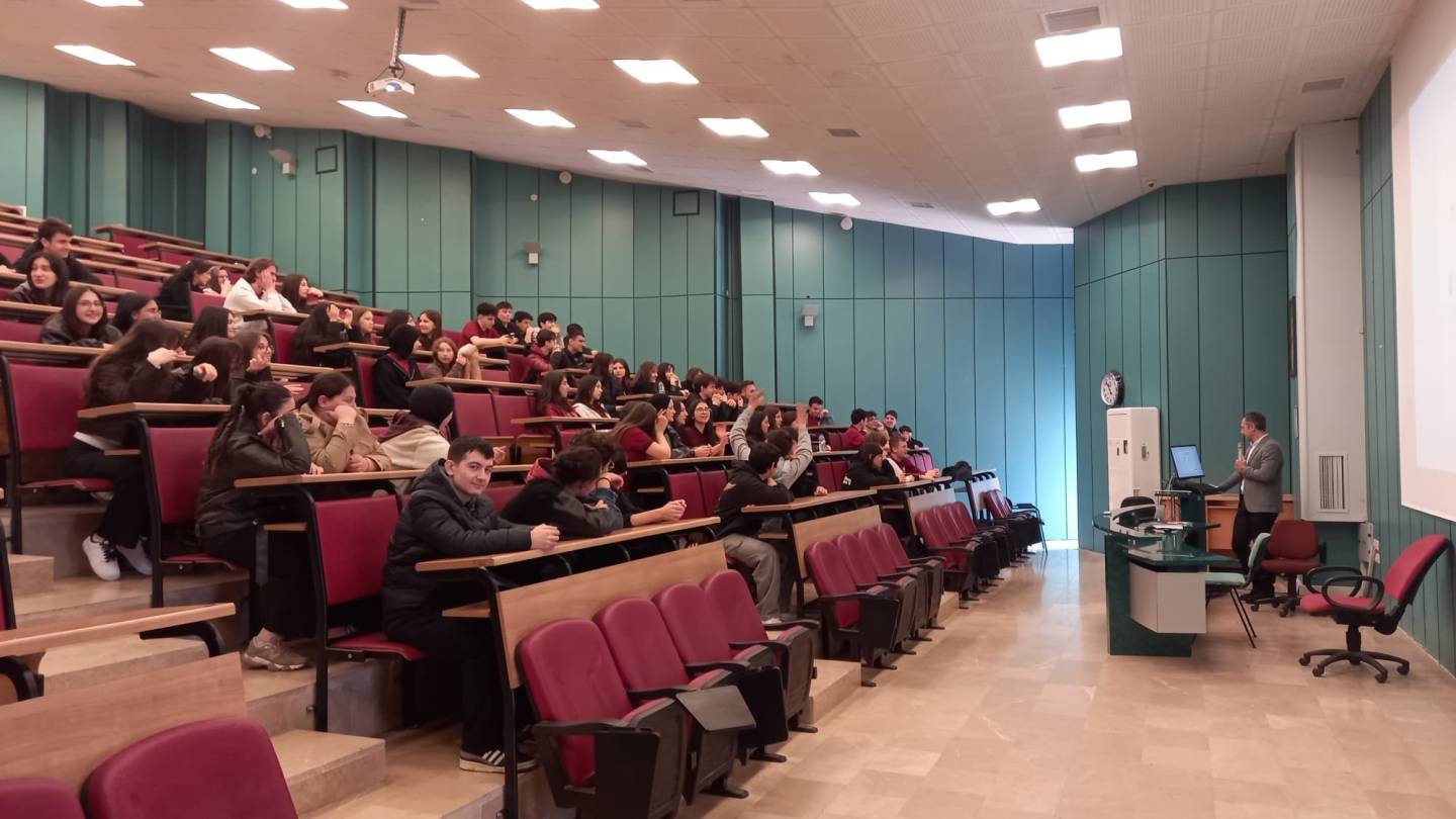 Ziyaret kapsamında, Dr. Öğr. Üyesi Ali Faruk ÖZYAŞAR tarafından Fakültemizin tanıtımı gerçekleştirildi. Öğrencilere eğitim-öğretim faaliyetlerimiz ve fakültemizin sunduğu olanaklar hakkında bilgi verildi. Ziyaret süresince öğrenciler, üniversite yaşamı ve akademik süreçler hakkında merak ettikleri soruları yöneltme fırsatı buldular. Etkinlik, samimi ve verimli bir atmosferde tamamlandı.