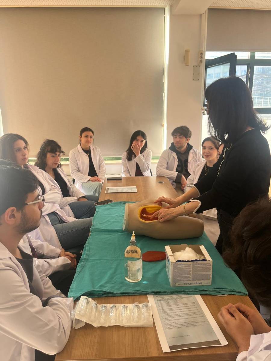 Etkinlik kapsamında, öğrencilere yönelik temel klinik beceriler üzerine bilgilendirme ve uygulama çalışmaları gerçekleştirildi. Dört istasyondan oluşan eğitimde, katılımcılara bandaj uygulama, damar yolu açma, intramüsküler enjeksiyon ve tansiyon ölçme hakkında teorik bilgiler aktarıldı ve ardından her öğrenci bu becerileri uygulamalı olarak deneyimleme fırsatı buldu.