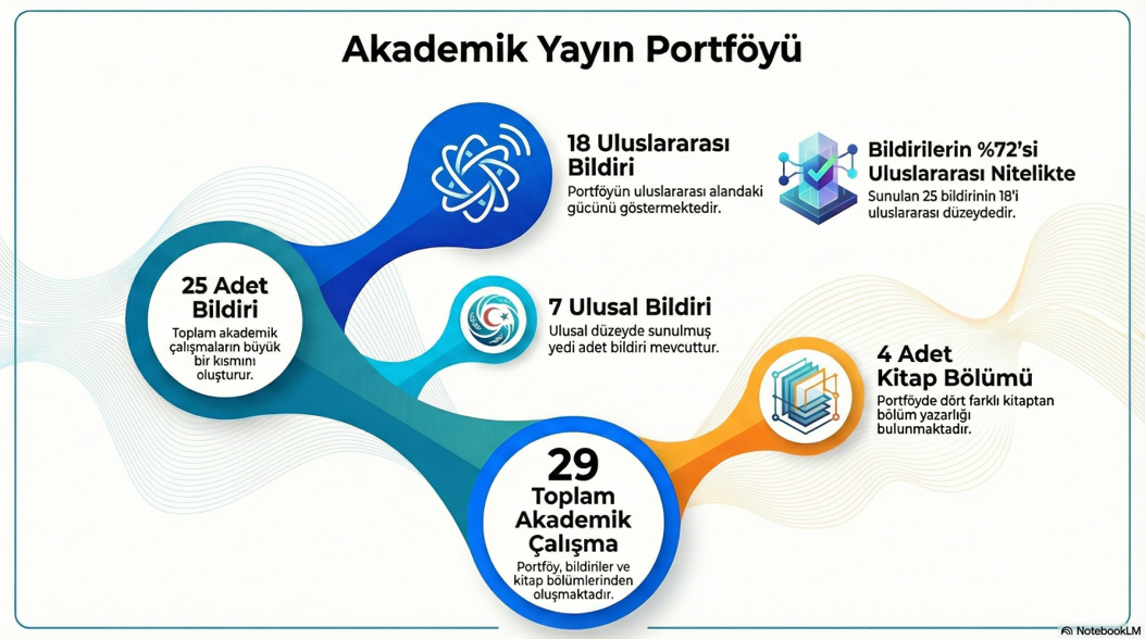Makale yayınlarının yanı sıra, bölümümüzden 18 uluslararası ve 7 ulusal olmak üzere toplam 25 bildiri sunulmuş, ayrıca 4 kitap bölümü yayımlanarak akademik üretkenlik farklı yayın türleriyle desteklenmiştir. Elde edilen bu çıktılar, bölümümüzün yalnızca niceliksel değil, nitelik ve bilimsel görünürlük odaklı bir yayın stratejisi benimsediğini göstermektedir.