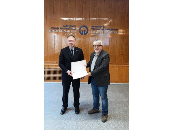 Prof. Dr. İsmail KAYA'ya, tescil edilen patenti dolayısıyla teşekkür belgesi takdim edildi.