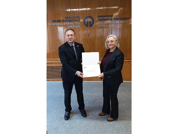 Prof. Dr. İsmail KAYA'ya, tescil edilen patenti dolayısıyla teşekkür belgesi takdim edildi.