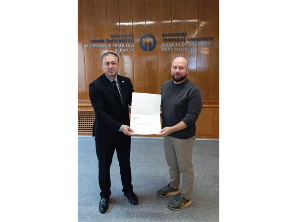 Arş. Gör. Mücahit KOCAMAN'a tescil edilen patenti dolayısıyla teşekkür belgesi takdim edildi.